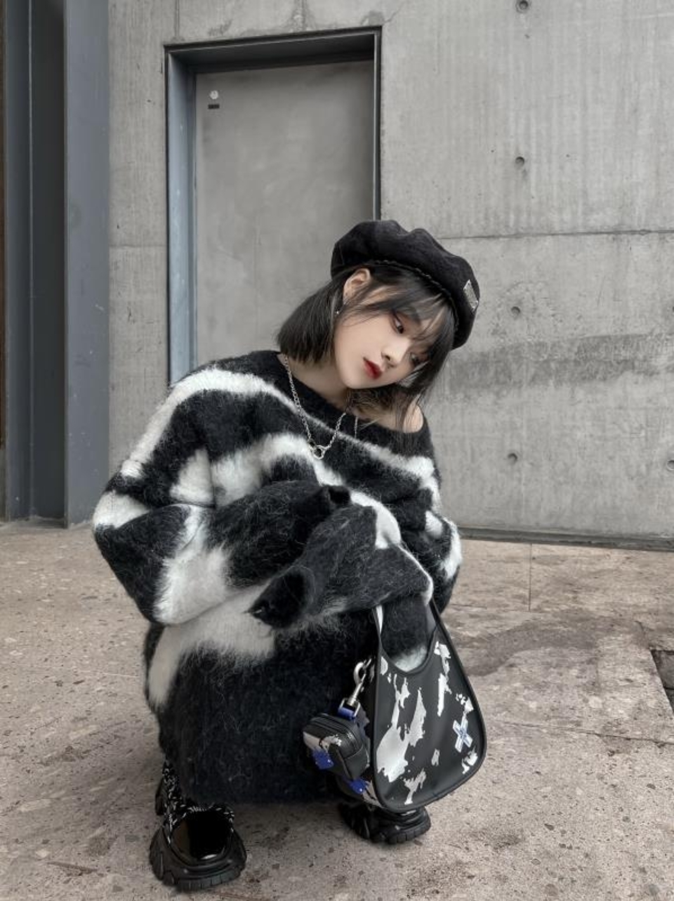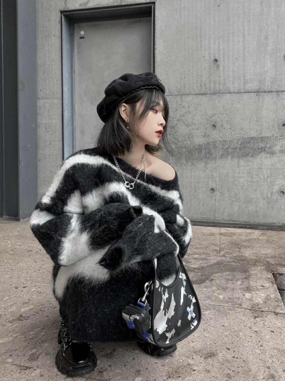 圆领宽松慵懒毛衣,复古的针织衫款式,柔软舒适的面料,宽松的版型,穿着更加的随意,有着十足的慵懒感,简约好看。