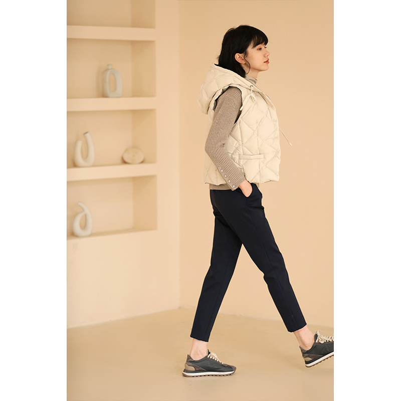高腰的设计,拉长腿部线条,显瘦效果很好,高腰的版型,很显高挑,修身的剪裁,修饰腿部曲线,上身很有范。