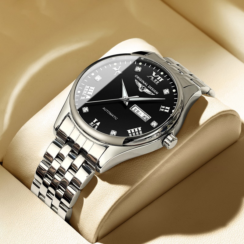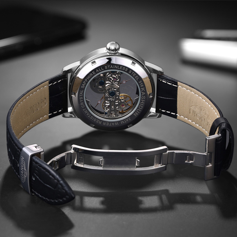 表盘的设计非常的简约,搭配上镂空的表盘,更显时尚。