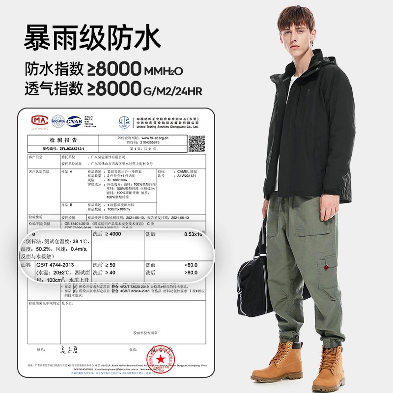 采用防泼水面料,透气舒适,具有良好的抗撕裂性能,可有效保护身体。