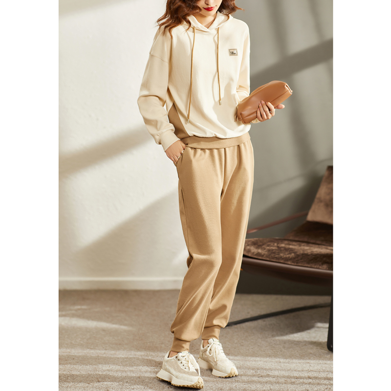 运动套装采用了连帽的设计,让你的运动更加的舒适,而且还能很好的修饰脸型,搭配上一条牛仔裤,就能轻松穿出时尚的气质。