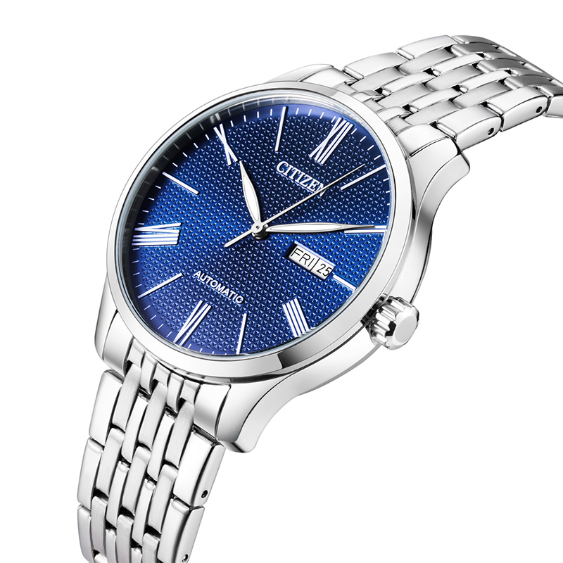 此款西铁城机械表,采用人工合成蓝宝石玻璃镜面材质,防刮耐磨,不锈钢表壳和表壳,让你在任何场合都可以轻松佩戴。