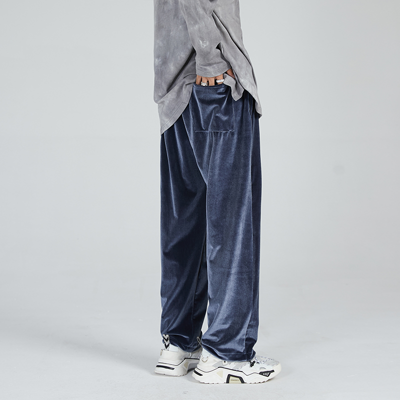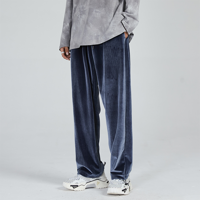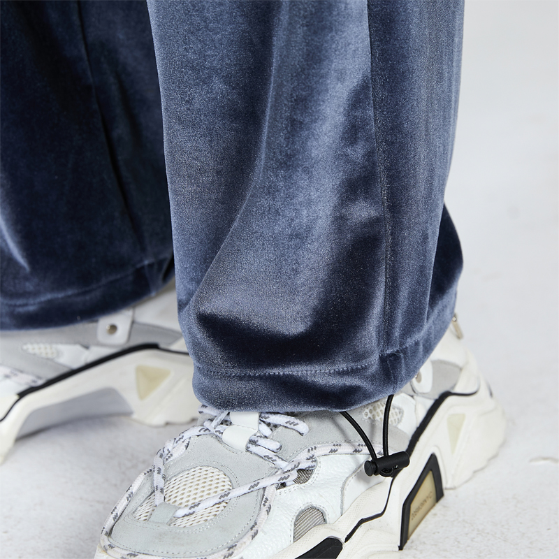 oii王嘉尔同款丝绒裤垂坠感高街裤子金丝绒直筒宽松运动阔腿男潮