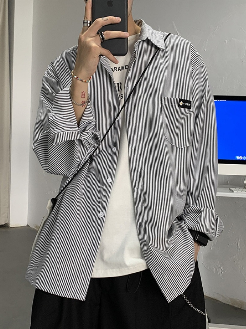 这件衬衫可以单穿也可以当打底穿,宽松的版型穿起来还蛮舒服的,版型也很正,买的L码穿着刚刚好,款式潮流还百搭。