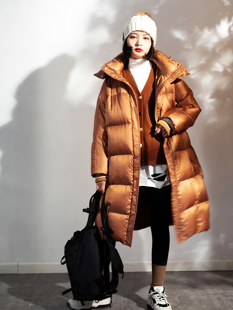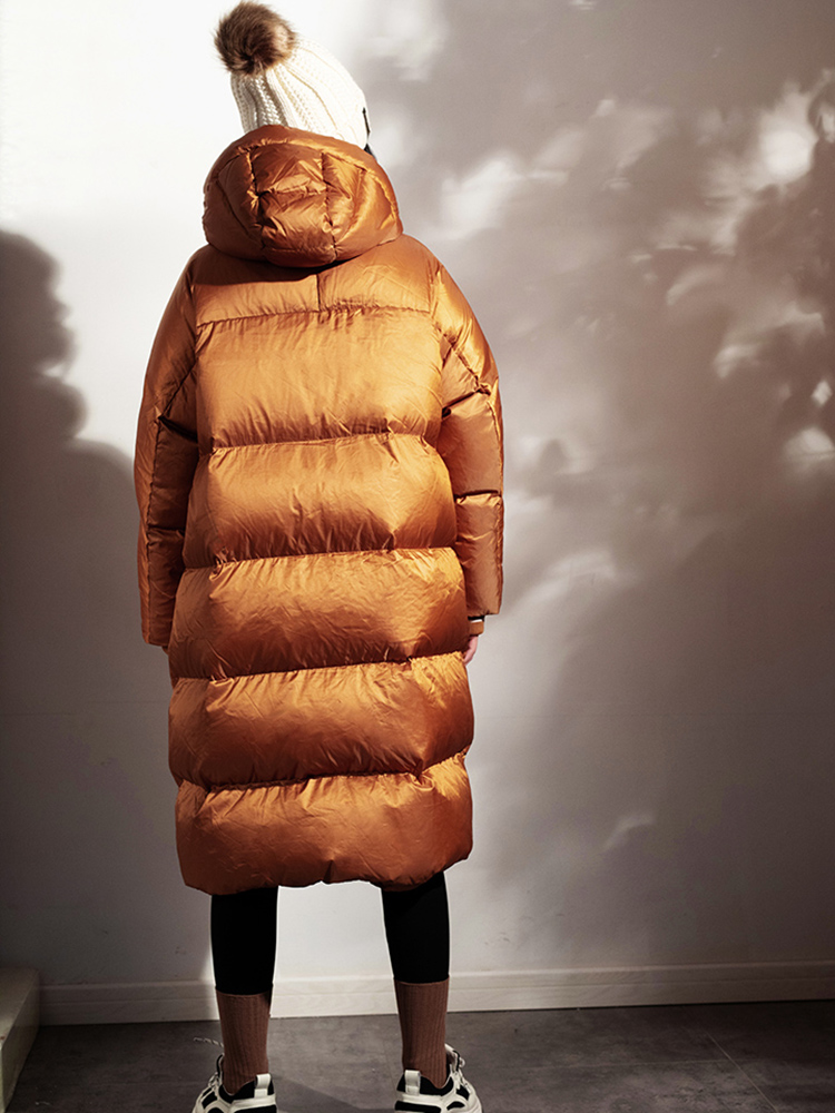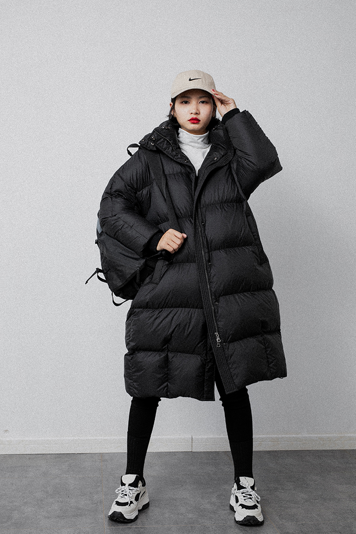 白鸭绒填充,轻盈又保暖,中长款羽绒服,保暖舒适,黑色的色调,经典又百搭,宽松版型,穿着舒适自在。