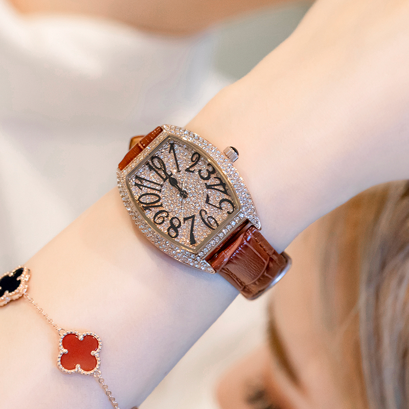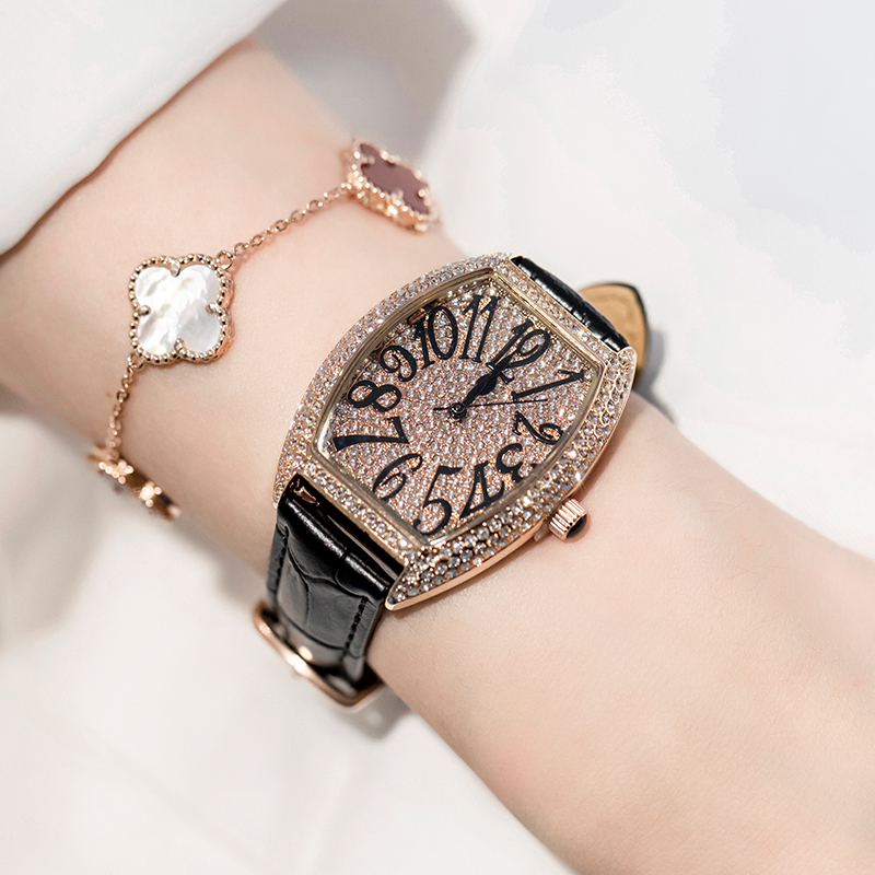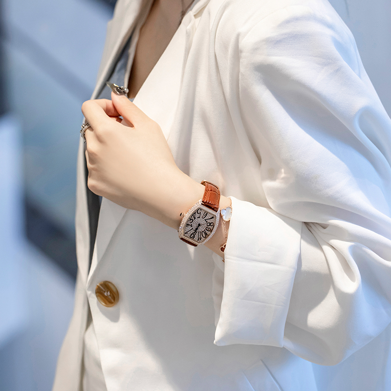 这款来自施华洛世奇的女士手表,采用了水钻的点缀,让手表更显时尚感,表盘上的水钻装饰,更是增添了几分奢华的气息。