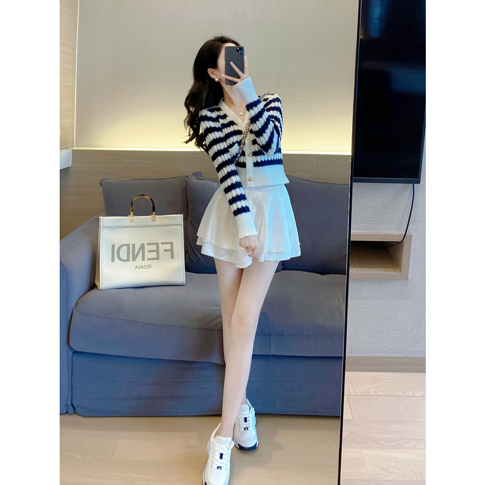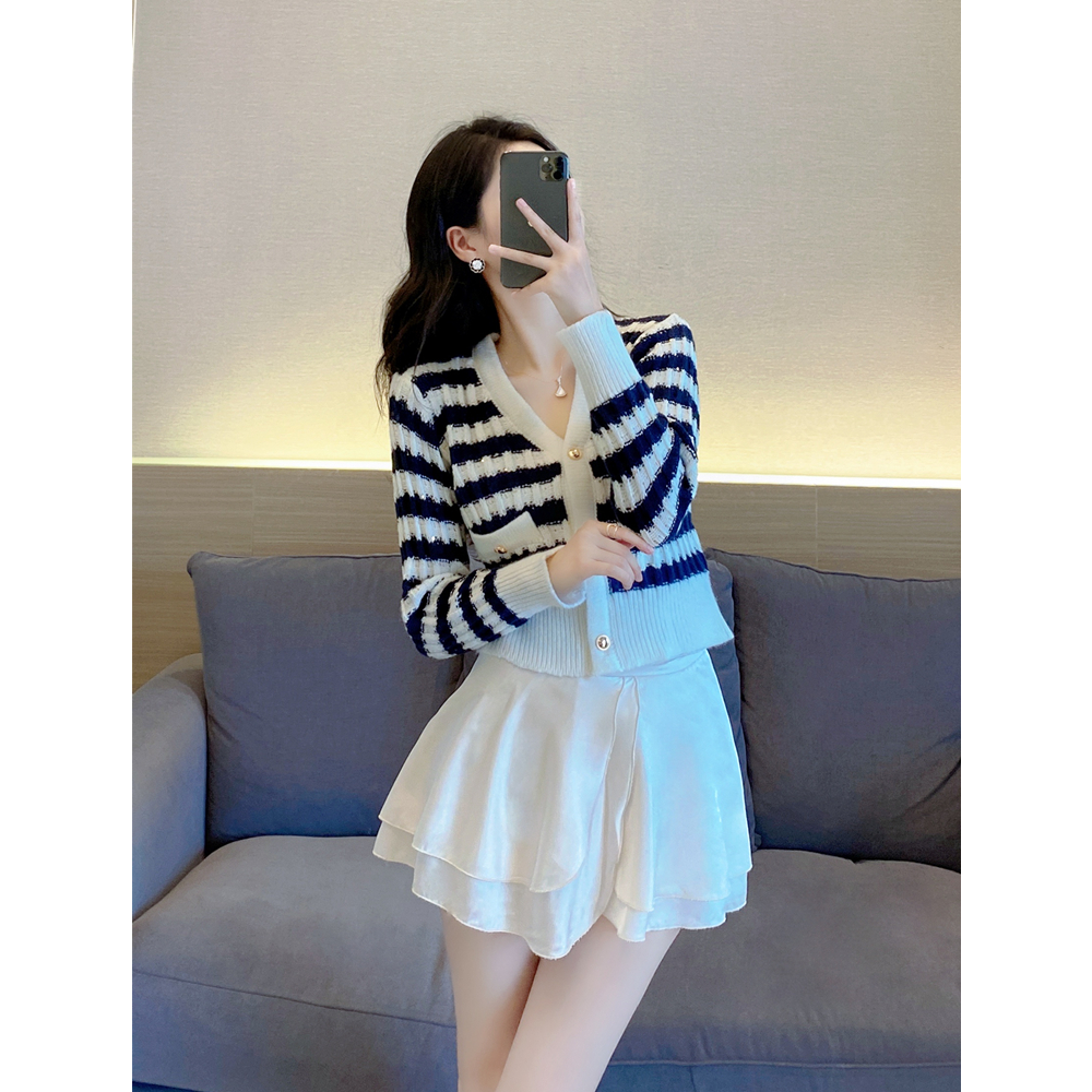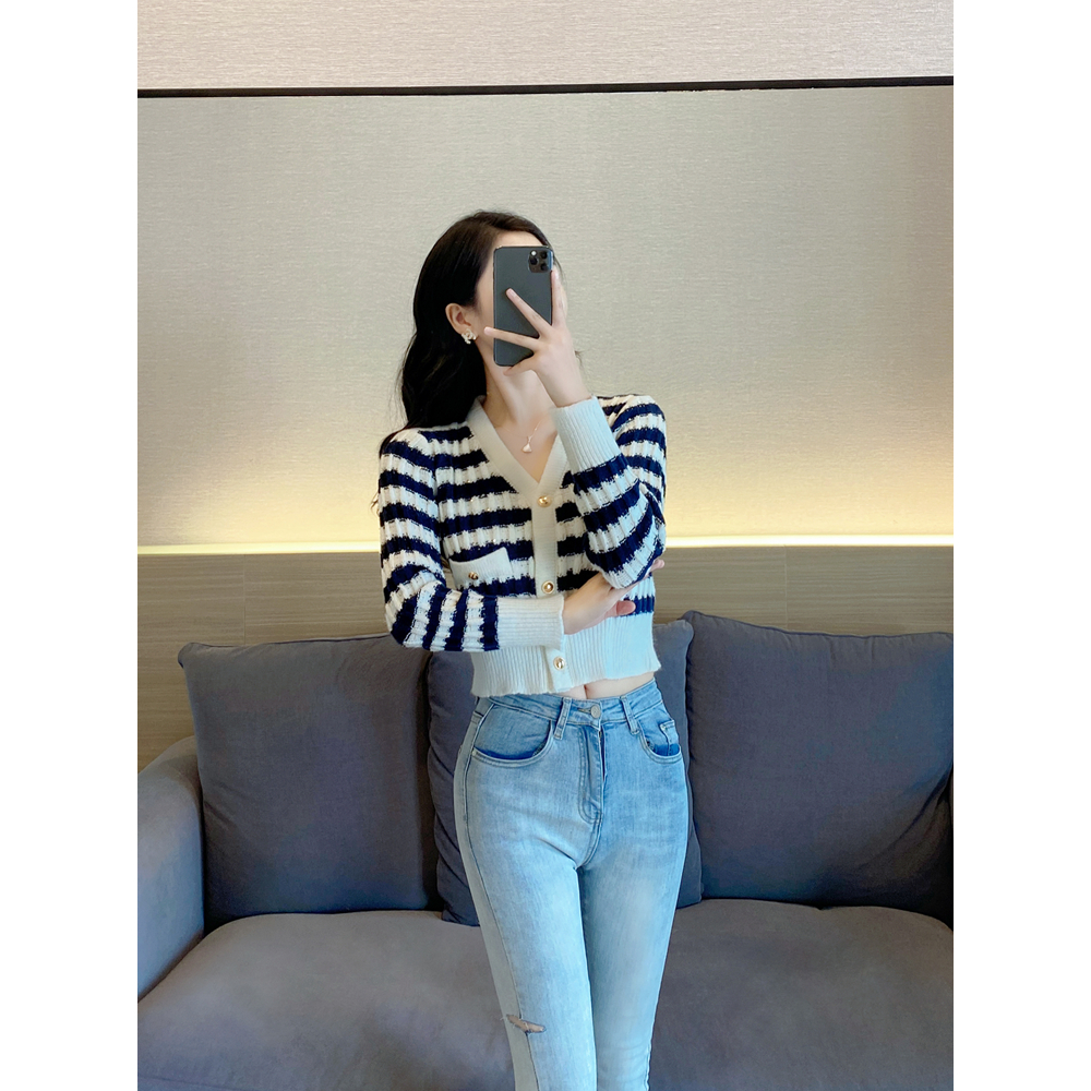 短款外套,拉长身材比例,开衫设计,穿脱更加方便,经典条纹元素,时尚百搭。