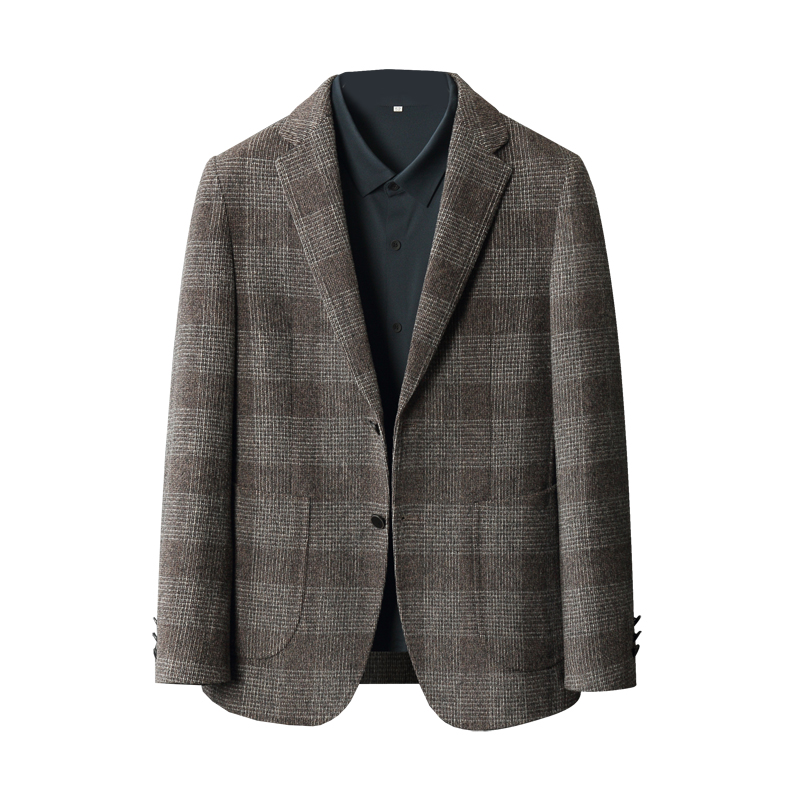 修身的小西装外套,采用了经典的格纹元素,搭配上经典格纹,彰显男士的绅士风度。