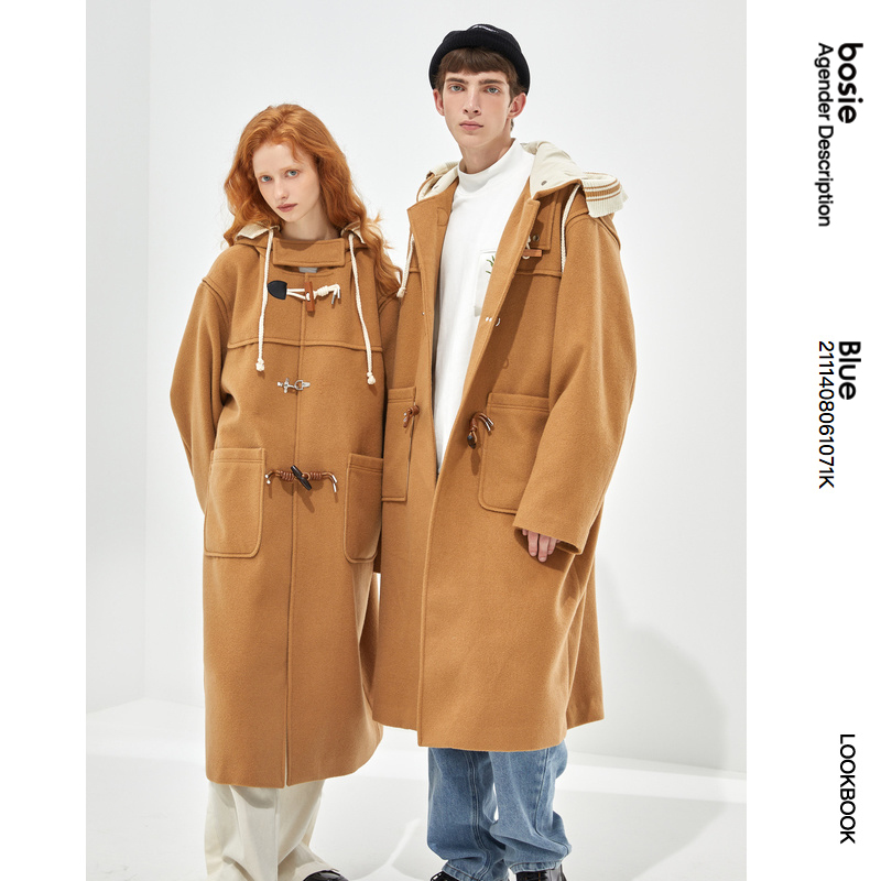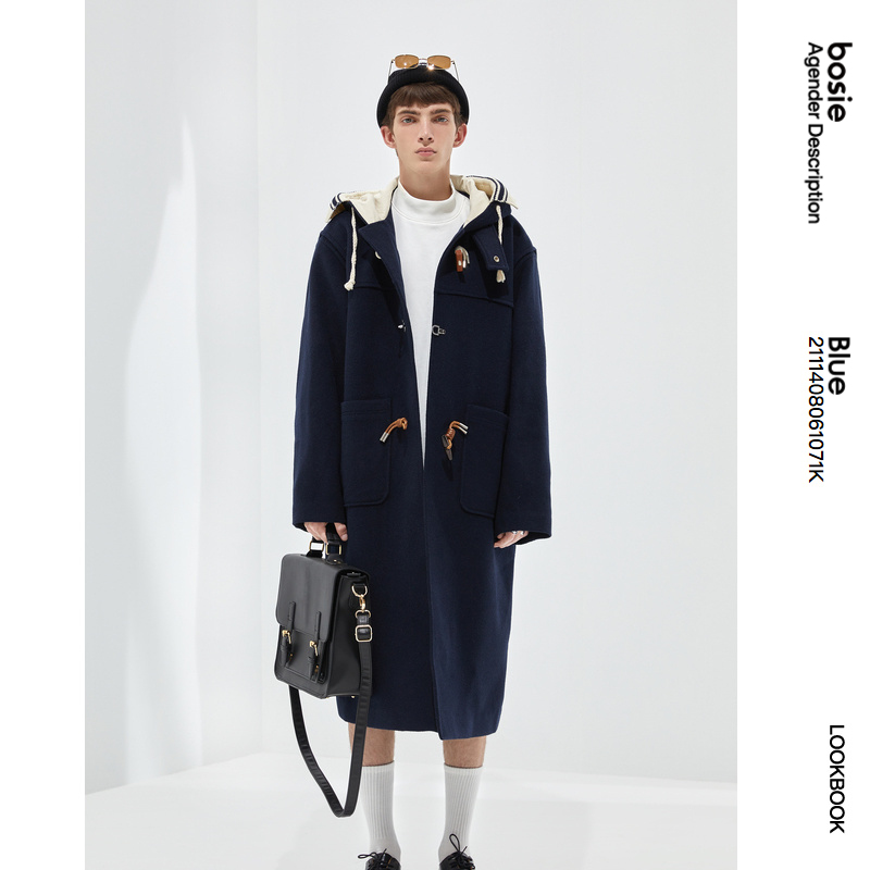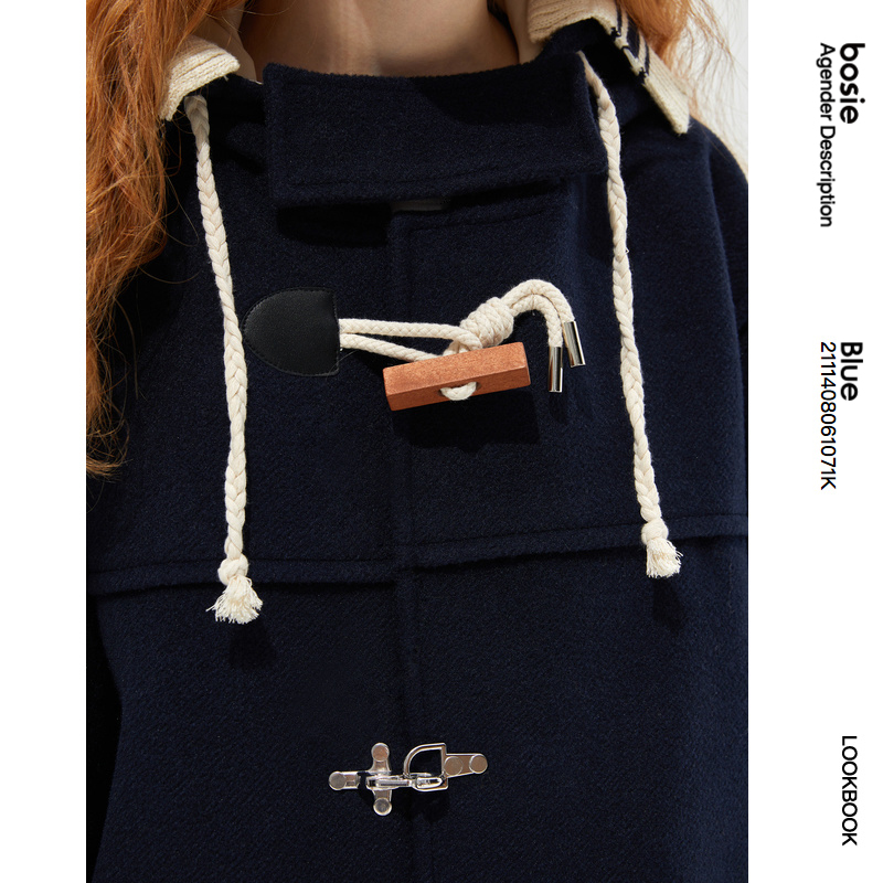 这是一款时尚休闲风的毛呢大衣,中长款的版型设计,上身效果很好,穿上很显气质,很有学院风的感觉。