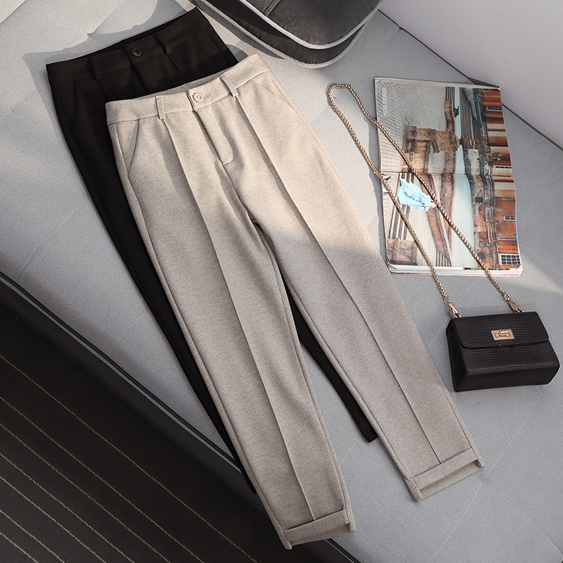 高腰的设计,拉长腿部线条,显瘦效果很好,高腰的版型,很显高挑,修身的剪裁,修饰腿部曲线,上身很有范。