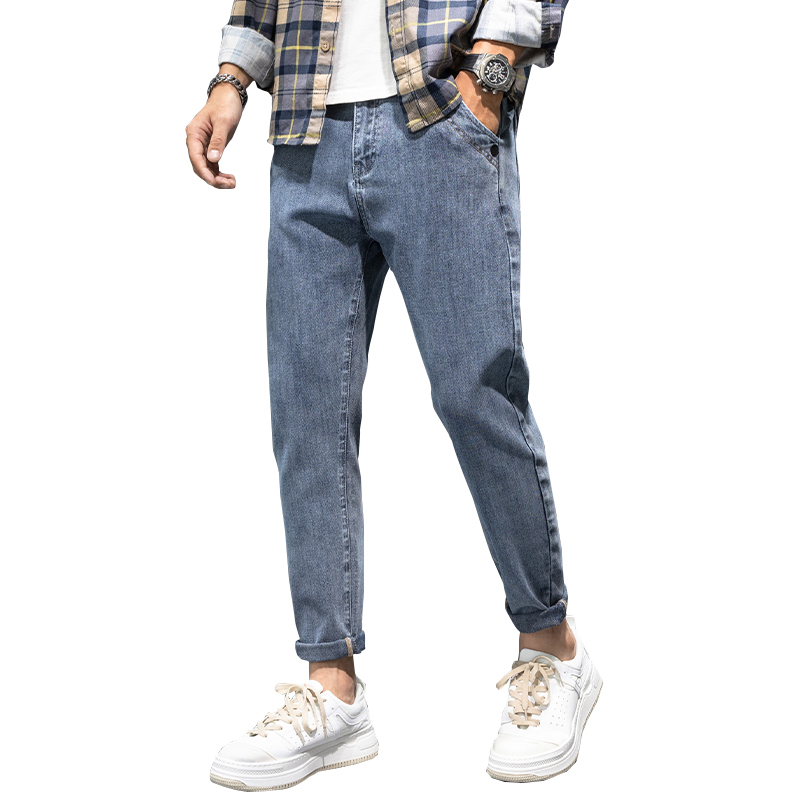 高腰设计,拉长身材比例。高腰牛仔裤,显瘦显腿长。直筒裤型,修饰腿部线条。