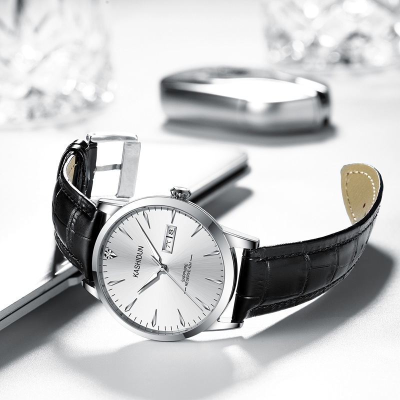 简约而不简单的一款手表,采用了人工合成蓝宝石镜面,防刮耐磨。不锈钢表壳,佩戴舒适。