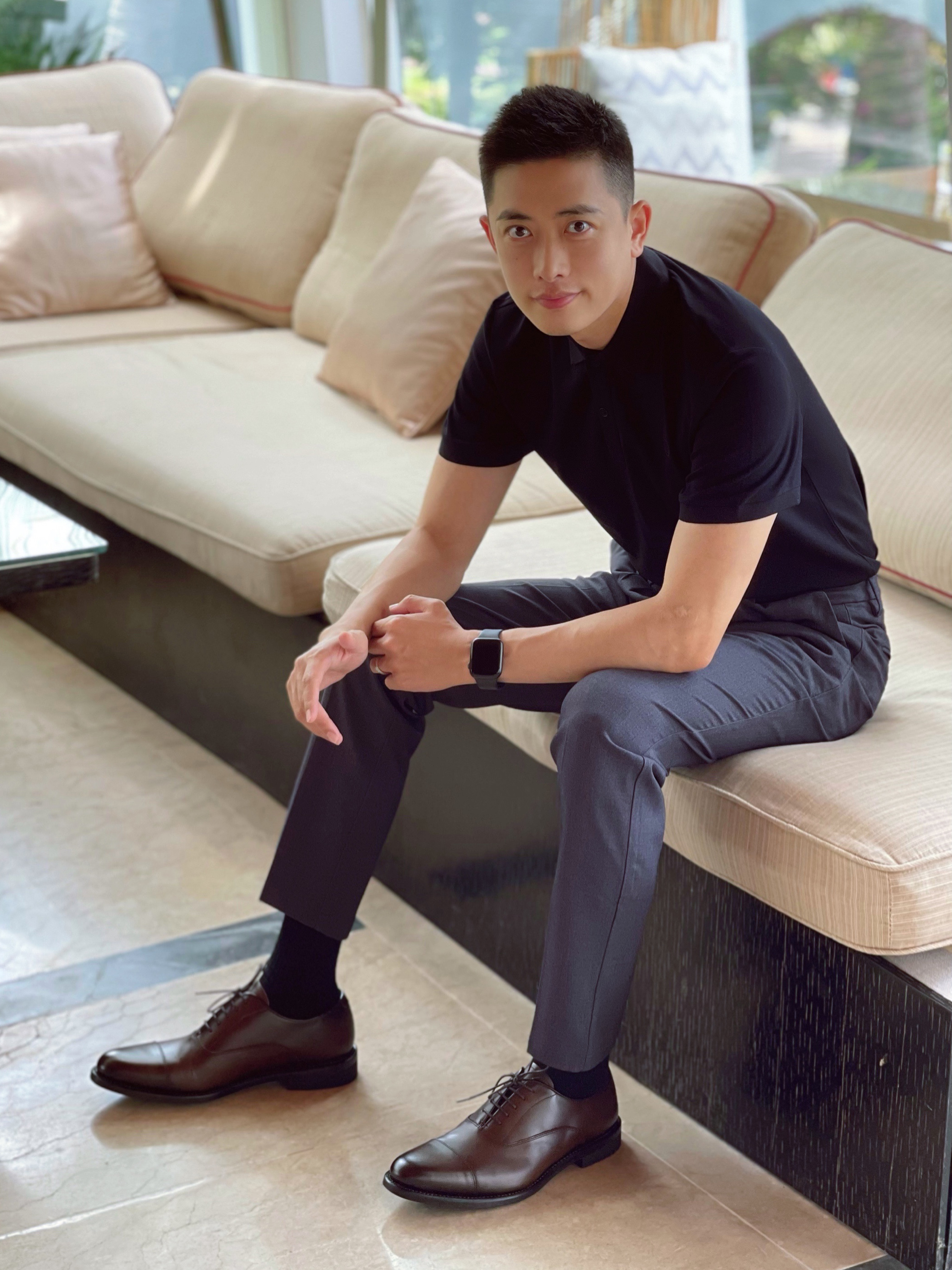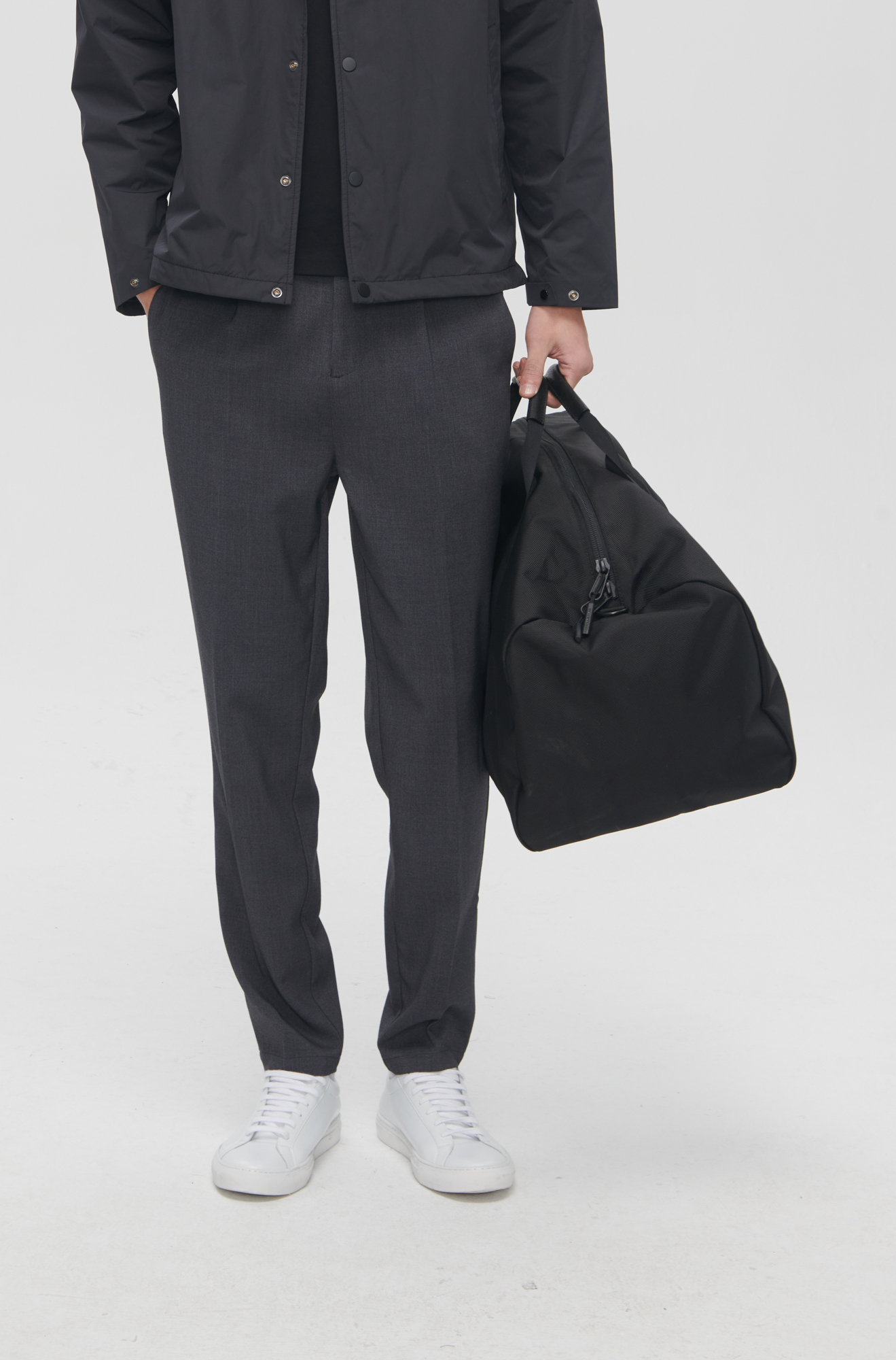 简约的高腰设计,搭配上修身的版型,上身显瘦又显高。