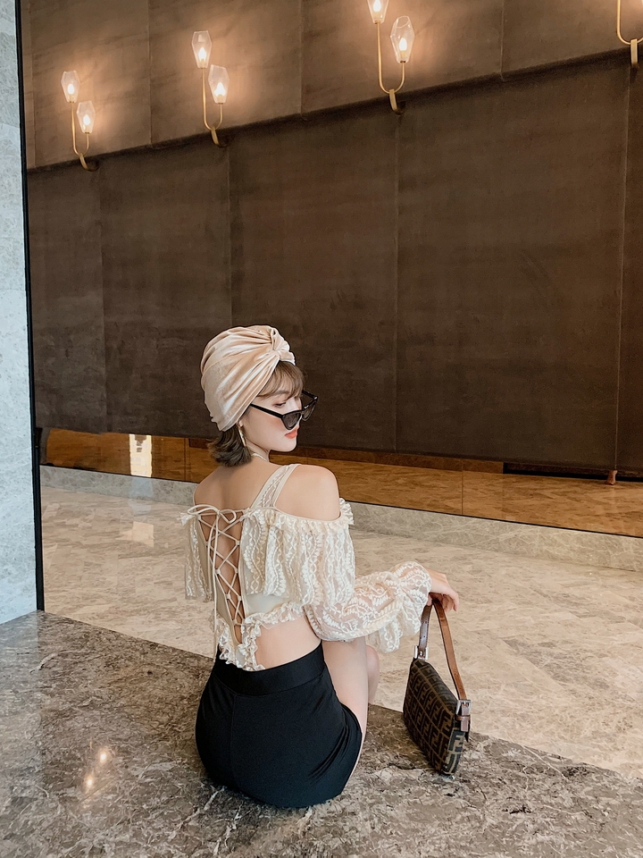 上身搭配一件性感抹胸上衣,秀出纤细的身姿曲线!