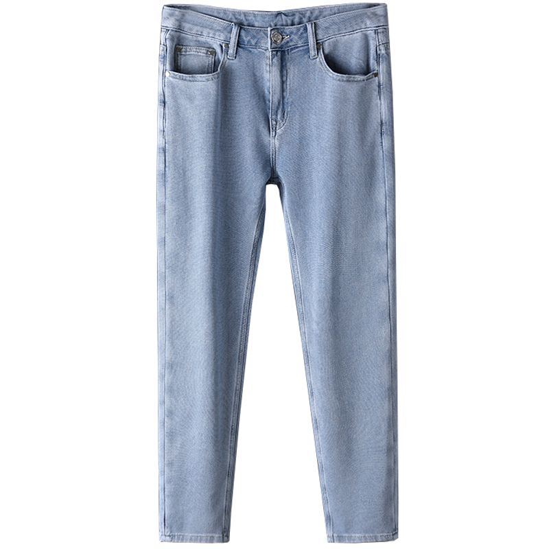 高腰设计,拉长身材比例。高腰牛仔裤,显瘦显腿长。直筒裤型,修饰腿部线条。