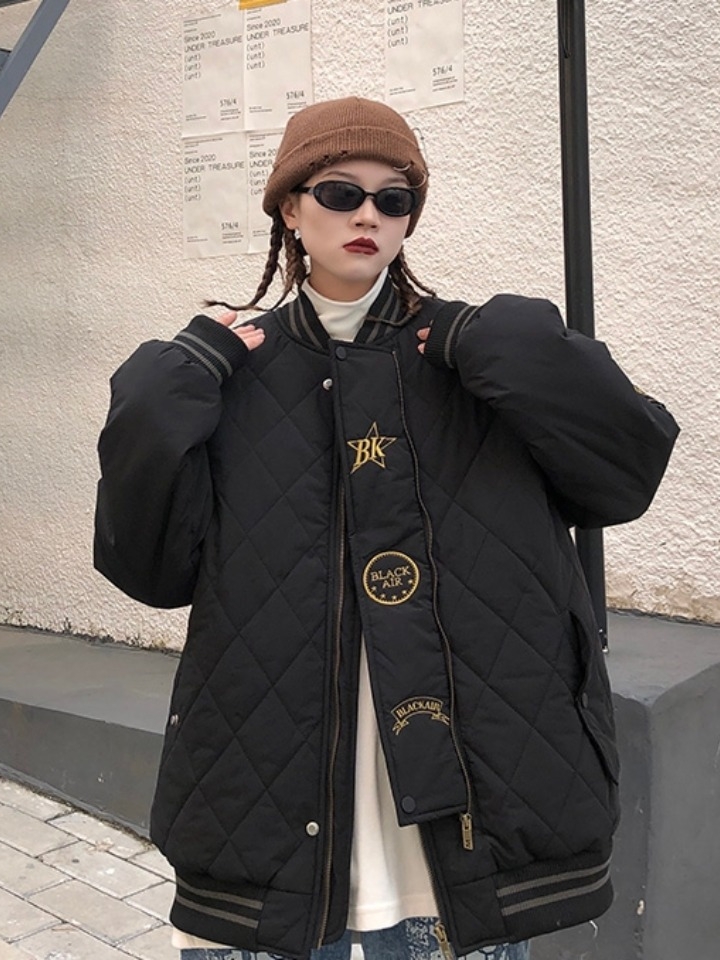 衣身菱格纹的点缀,丰富时尚感,显得衣身不单调,短款的版型,显高显苗条,很适合小个子女生驾驭。