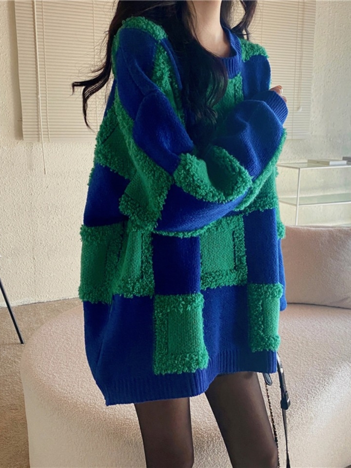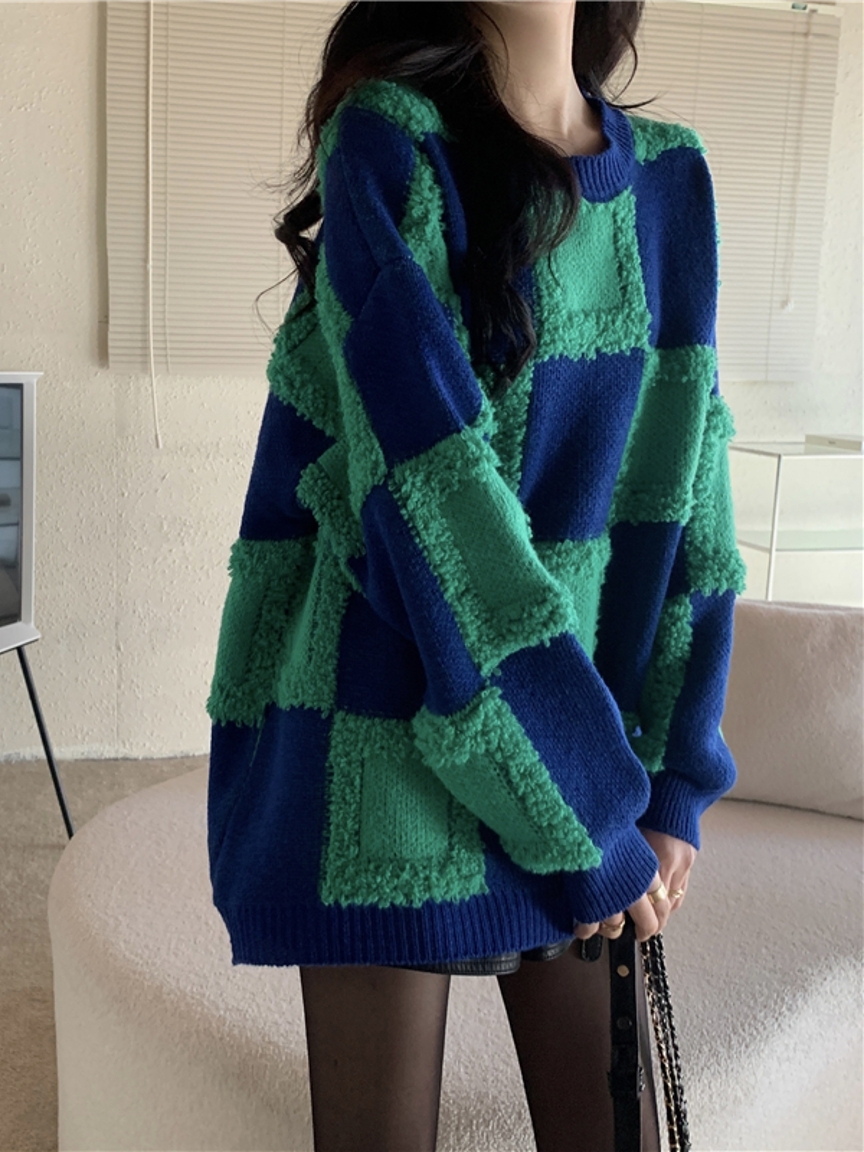 衣身融入了棋盘格的设计,凸显设计感,也为整体平添了不少复古典雅气息,而圆领的款式,修饰脖颈线条,不同脸型的妹纸都能驾驭。