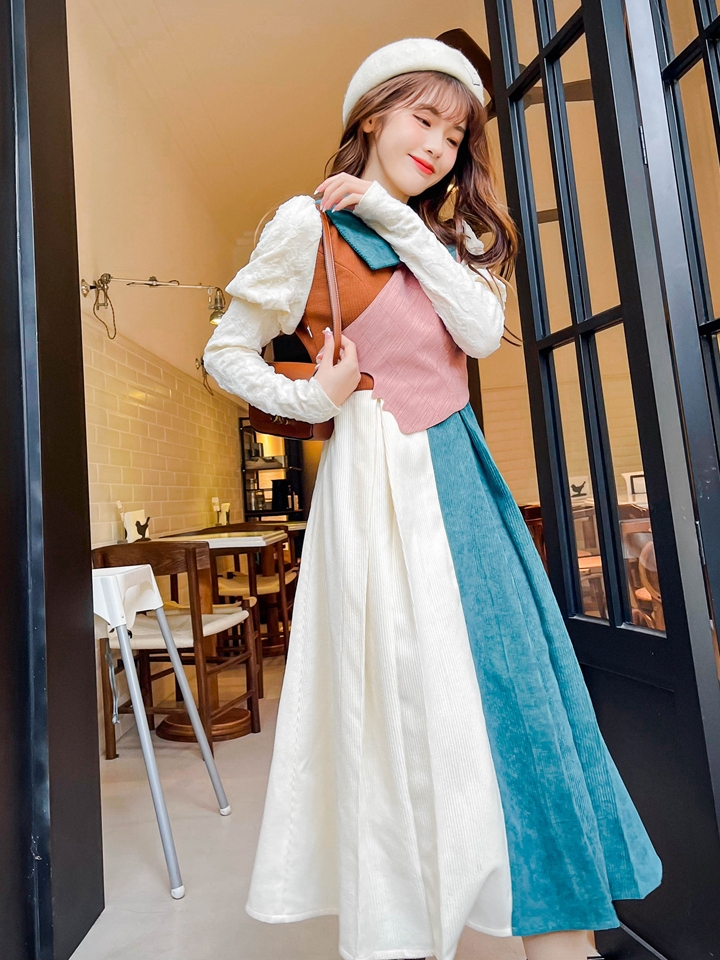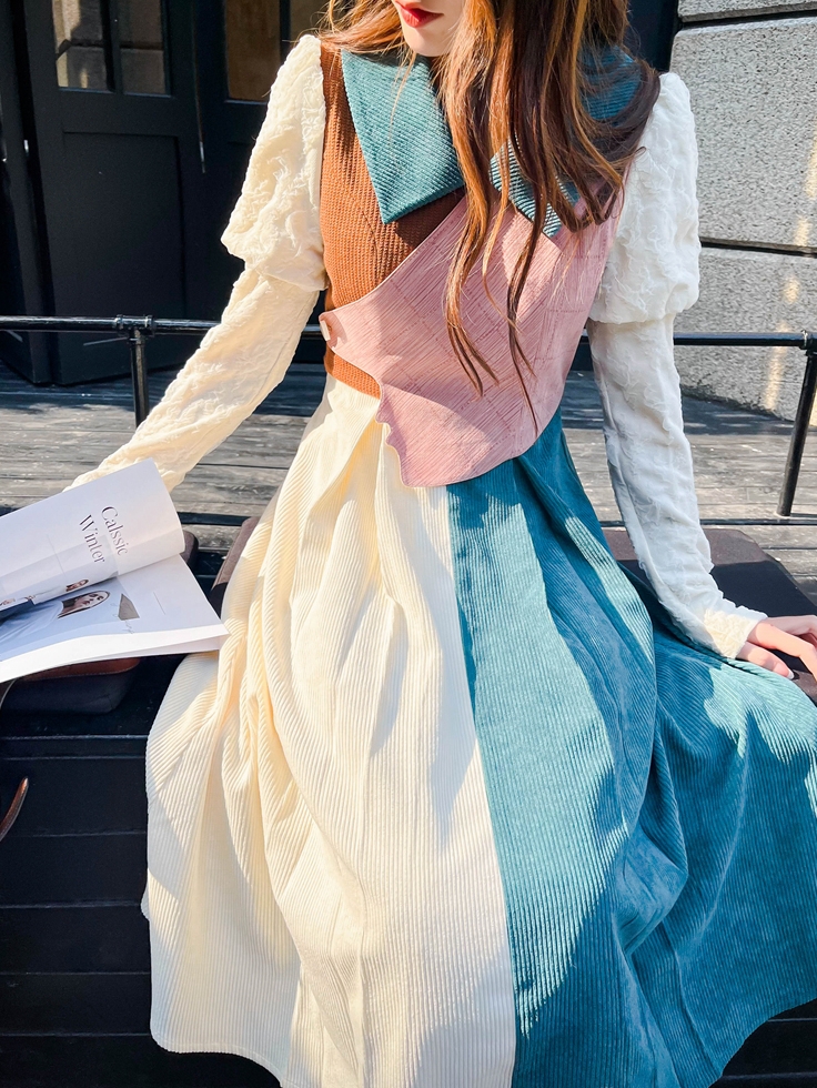 经典的撞色拼接青春醒目,独具设计感,摇曳的大摆型版型飘逸时尚。拼接假两件设计让整件衣服的层次感十足,立体条纹有效拉长身材比例,助你找到自己的黄金分割。