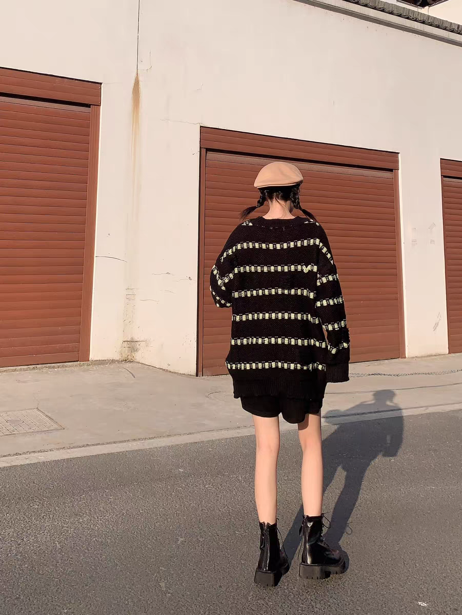 时尚的小毛衣来袭哦,经典的条纹设计,给衣衣带来了些许的时尚感哦,合体的修身剪裁,上身效果也很是好看哦。