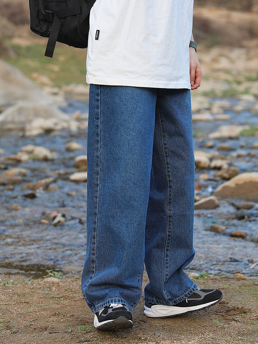 牛仔阔腿裤,采用优质牛仔面料制成,具有良好的弹性与挺括性,上身效果立体有型。采用水洗工艺处理,自带复古感,增加休闲感,经过做旧工艺处理,整体更具年代感,休闲直筒裤型剪裁,轻松穿出慵懒随意。