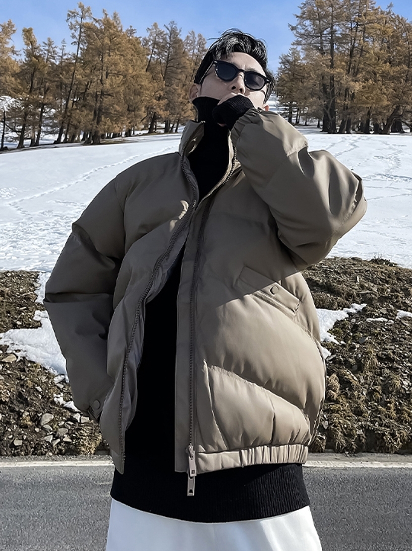这款纯色的短款面包服,整体呈现萌萌的蓬松感,防风立领包裹住脖子暖意十足,短款的版型设计凸显腿部线条,穿出纤瘦大长腿即视感,尽显小心机。