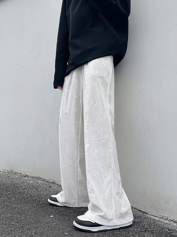 非常时髦亮眼的一款金丝绒阔腿裤,在裤身上加入了精美别致的花纹点缀,显得别具一格,更有时尚气息。