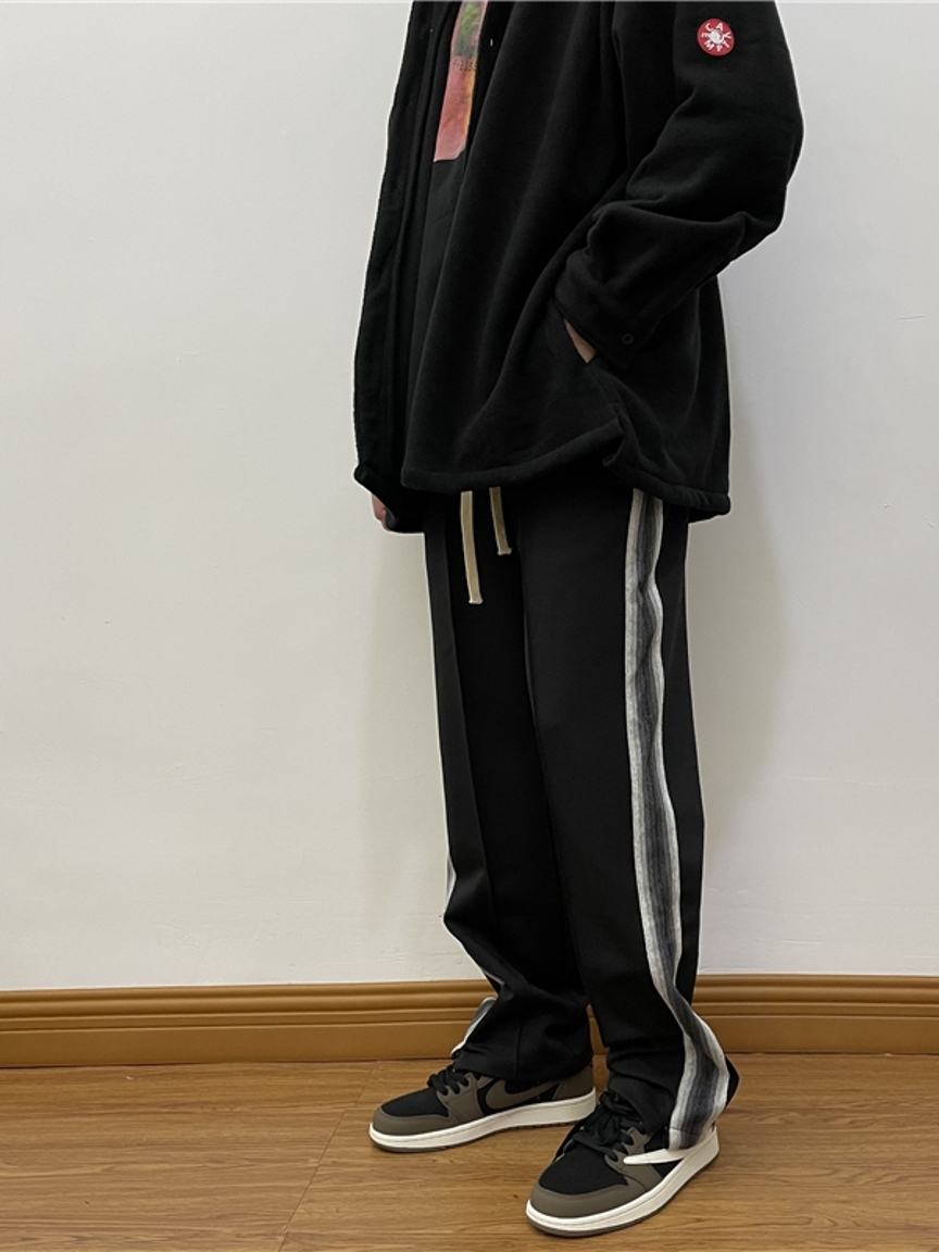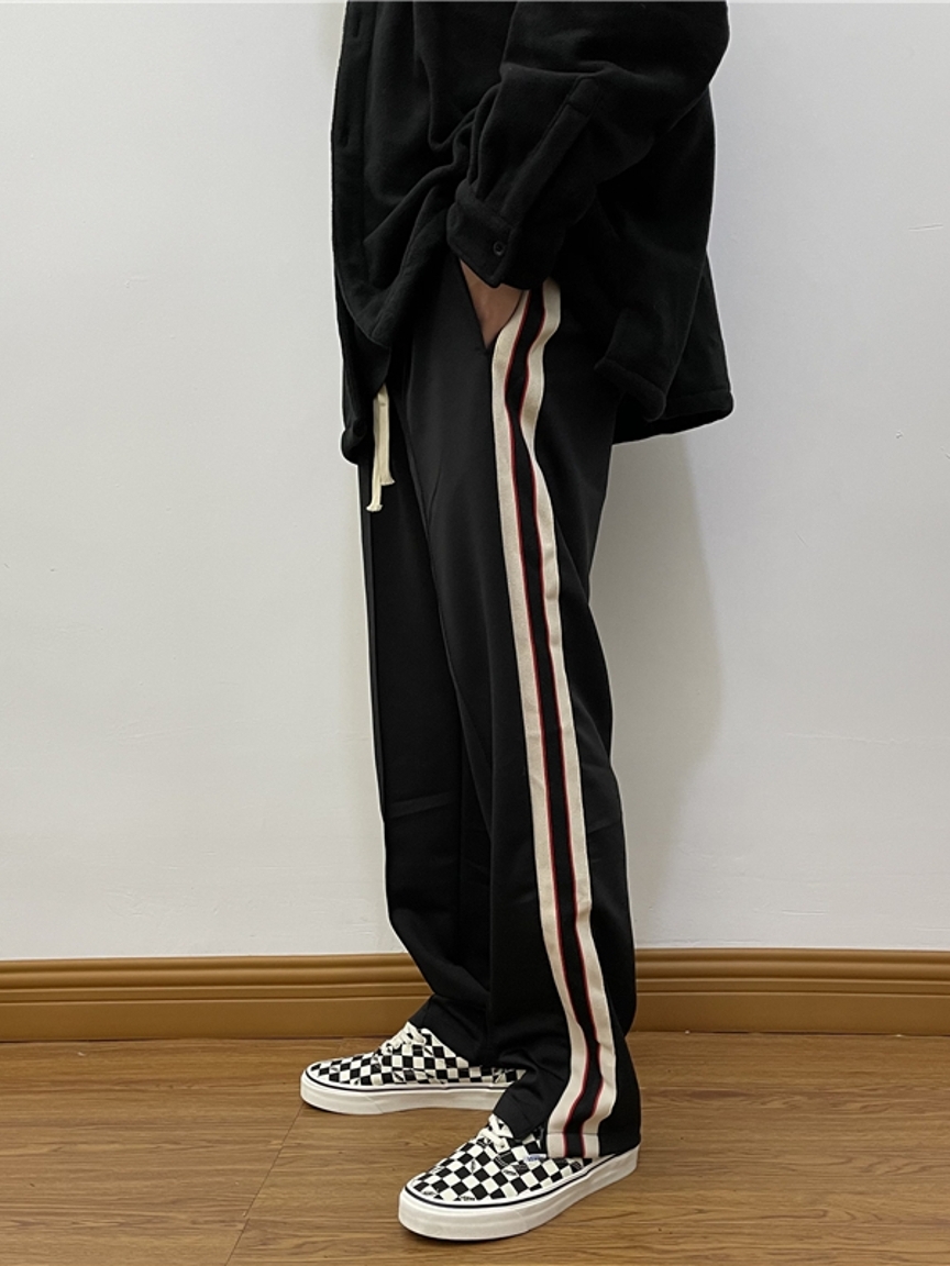 裤子两侧的撞色条纹设计显得个性十足,随便搭配一件卫衣都超级的帅气有型,舒适的面料,上身完全没有束缚感。