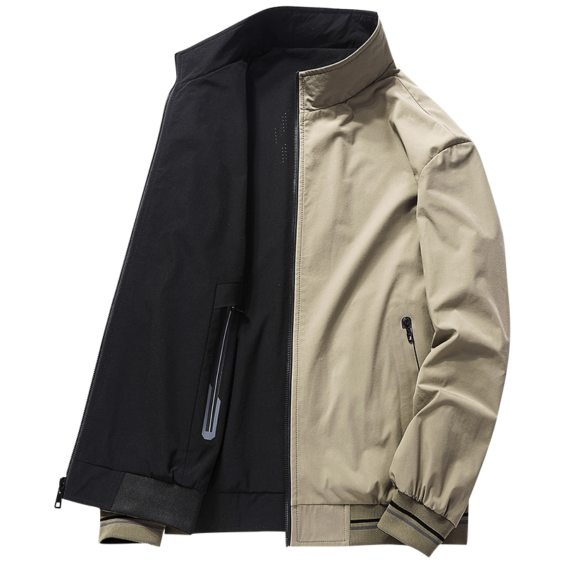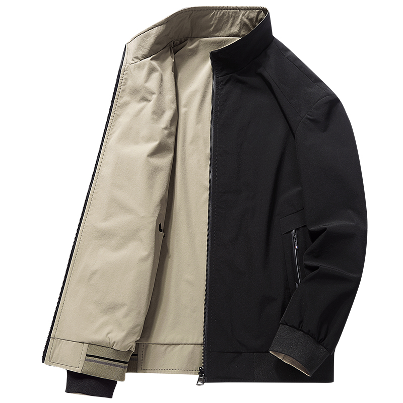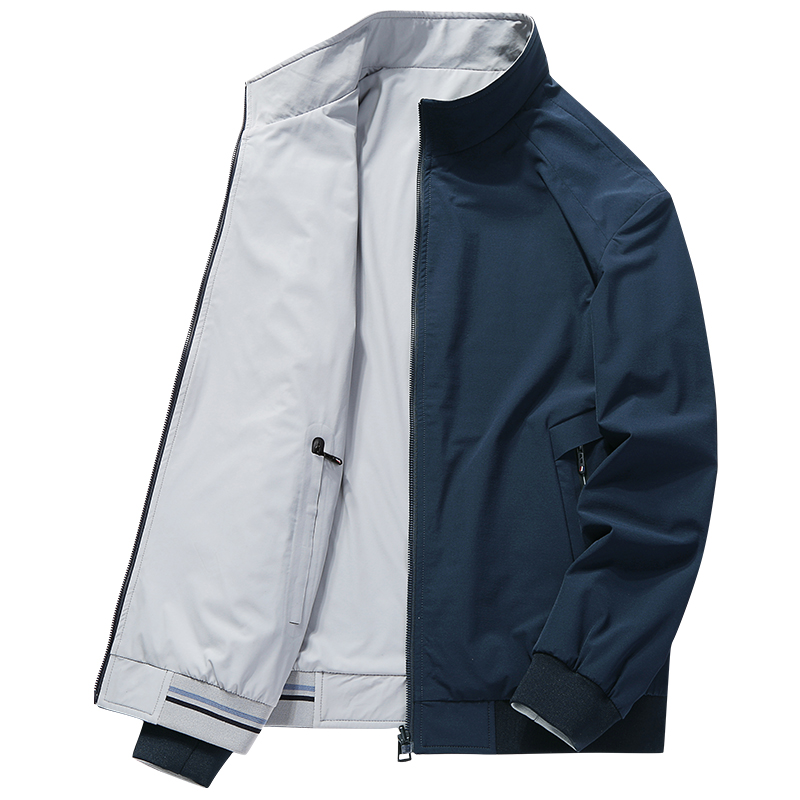 时尚的立领设计,简约大方,彰显男士的干练气质,宽松的版型,不挑身材,穿着舒适自在,优质的面料,亲肤透气,上身挺括有型。