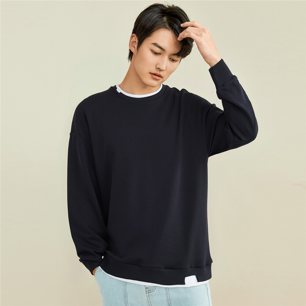 简约的纯色设计,搭配上宽松的版型,穿着舒适自在,衣身的撞色拼接设计更是增添了几分时尚感,下摆的开叉设计。
