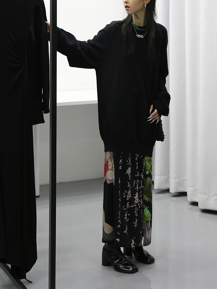 时髦画风的一款半身裙,由超有质感的缎面打造的哦~而且上面的个性印花设计,真的完美的戳中了我的审美哦!