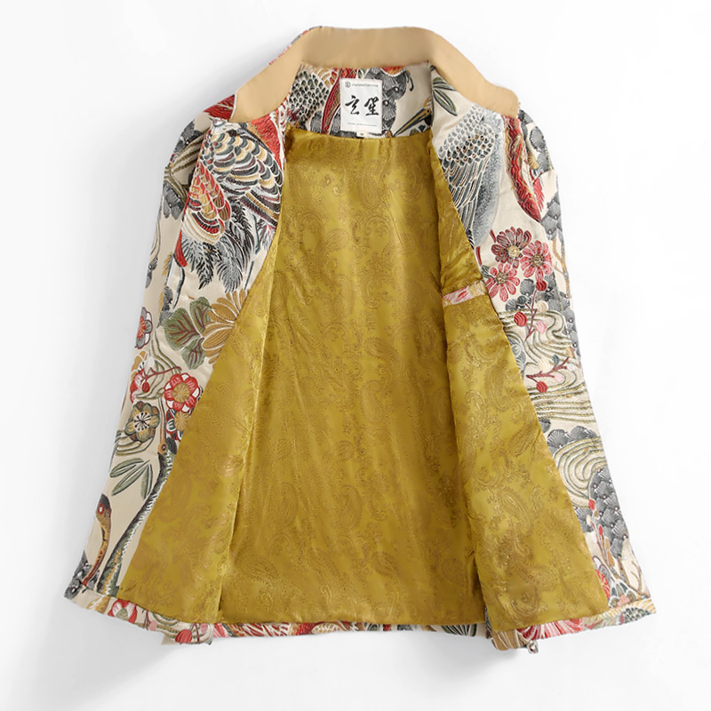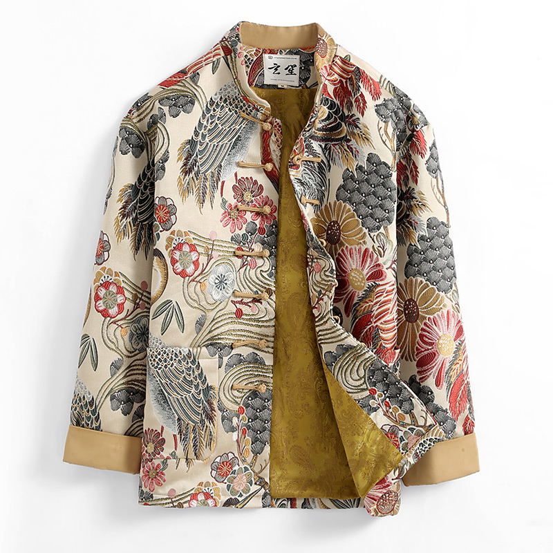 中式立领设计,精致的刺绣,彰显中国风的韵味,宽松的版型,不挑身材,穿着舒适自在。