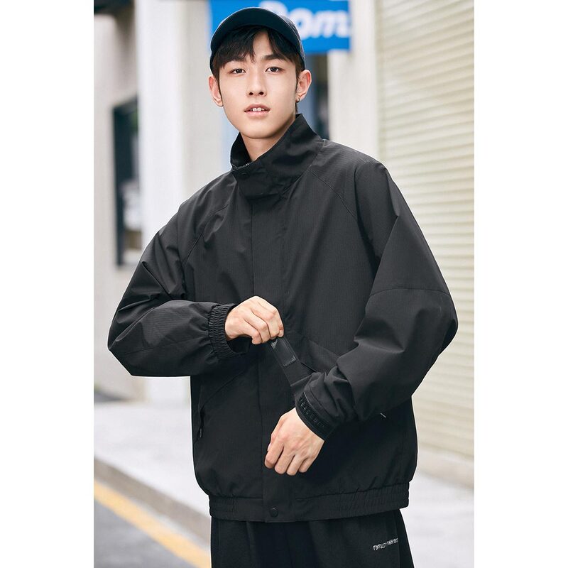 立领设计,修饰脖颈曲线。短款外套,拉长身材比例。冲锋衣版型,时尚感十足。