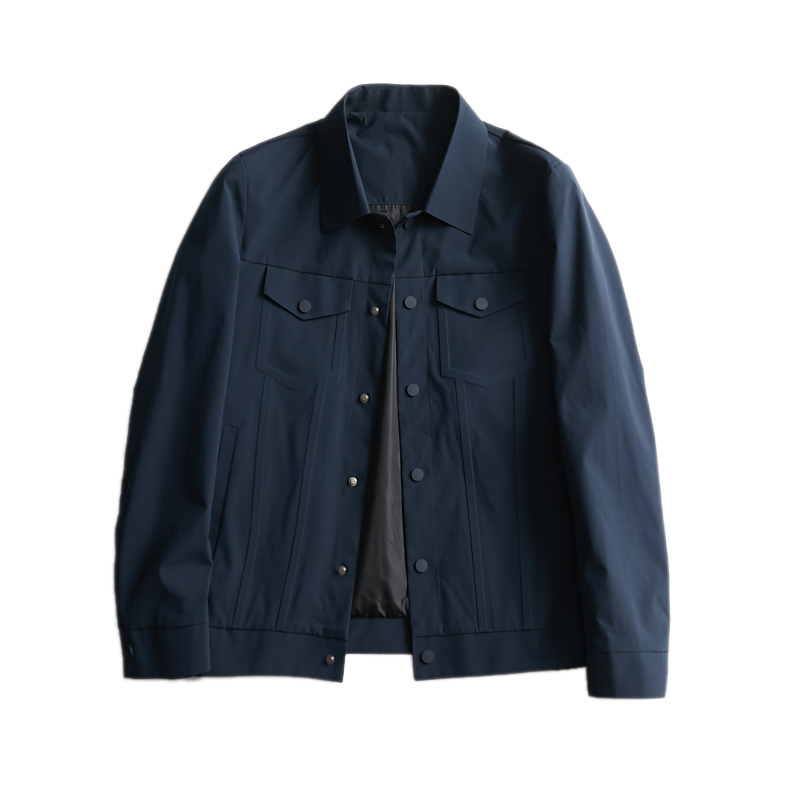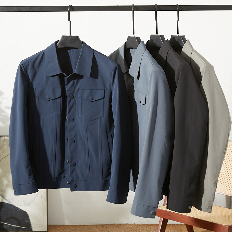此款夹克采用了优质面料,穿着舒适透气,经典的翻领设计,凸显男士的干练气质。