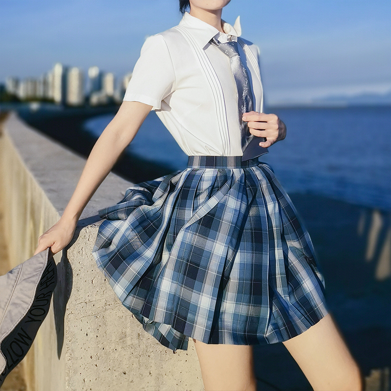 经典的格子元素,搭配上百褶的裙摆,让你的少女心爆棚。