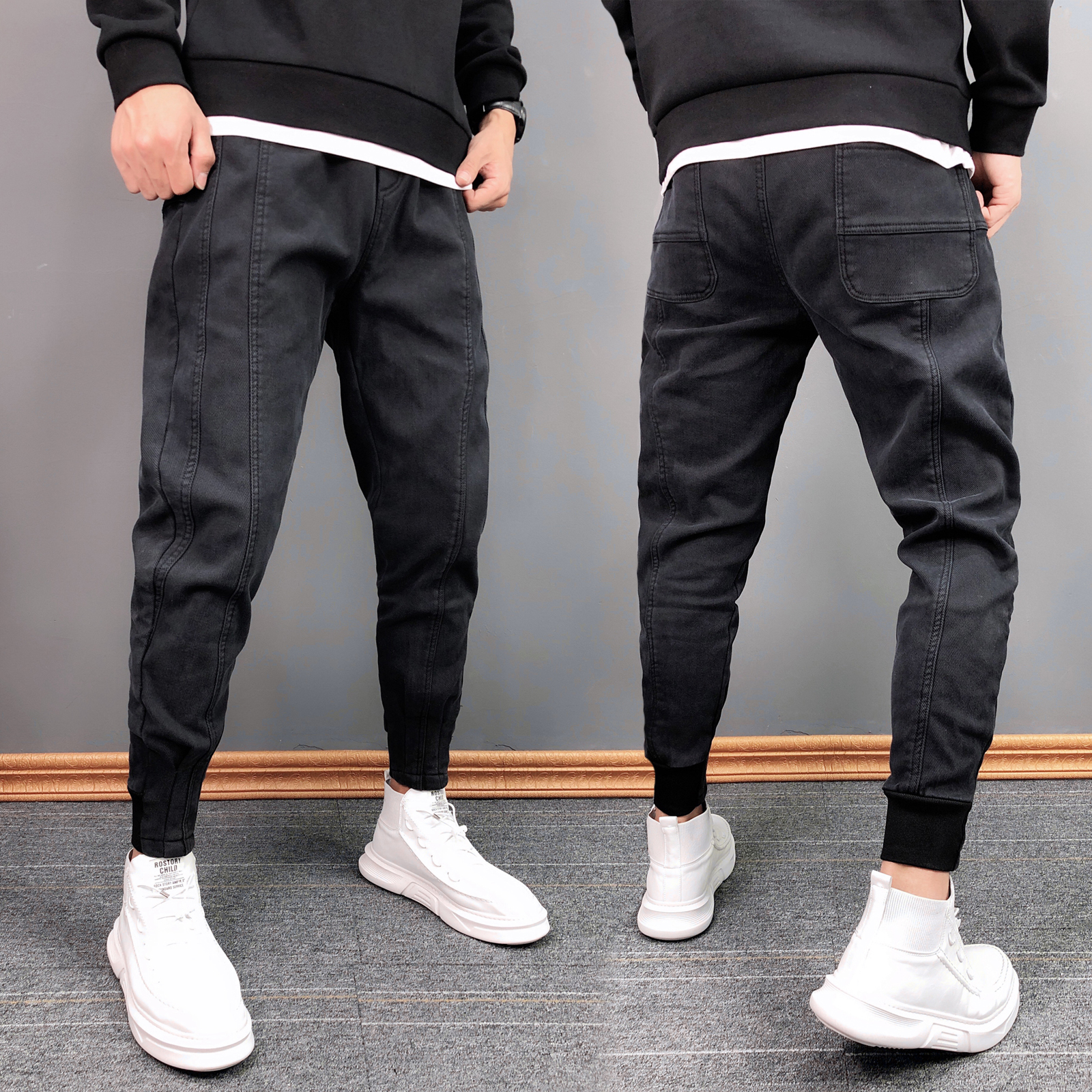 这款牛仔裤的设计很有特色,高腰的版型,很好的修饰了身材比例,显瘦效果很棒,搭配一件T恤,就能轻松穿出时尚感。