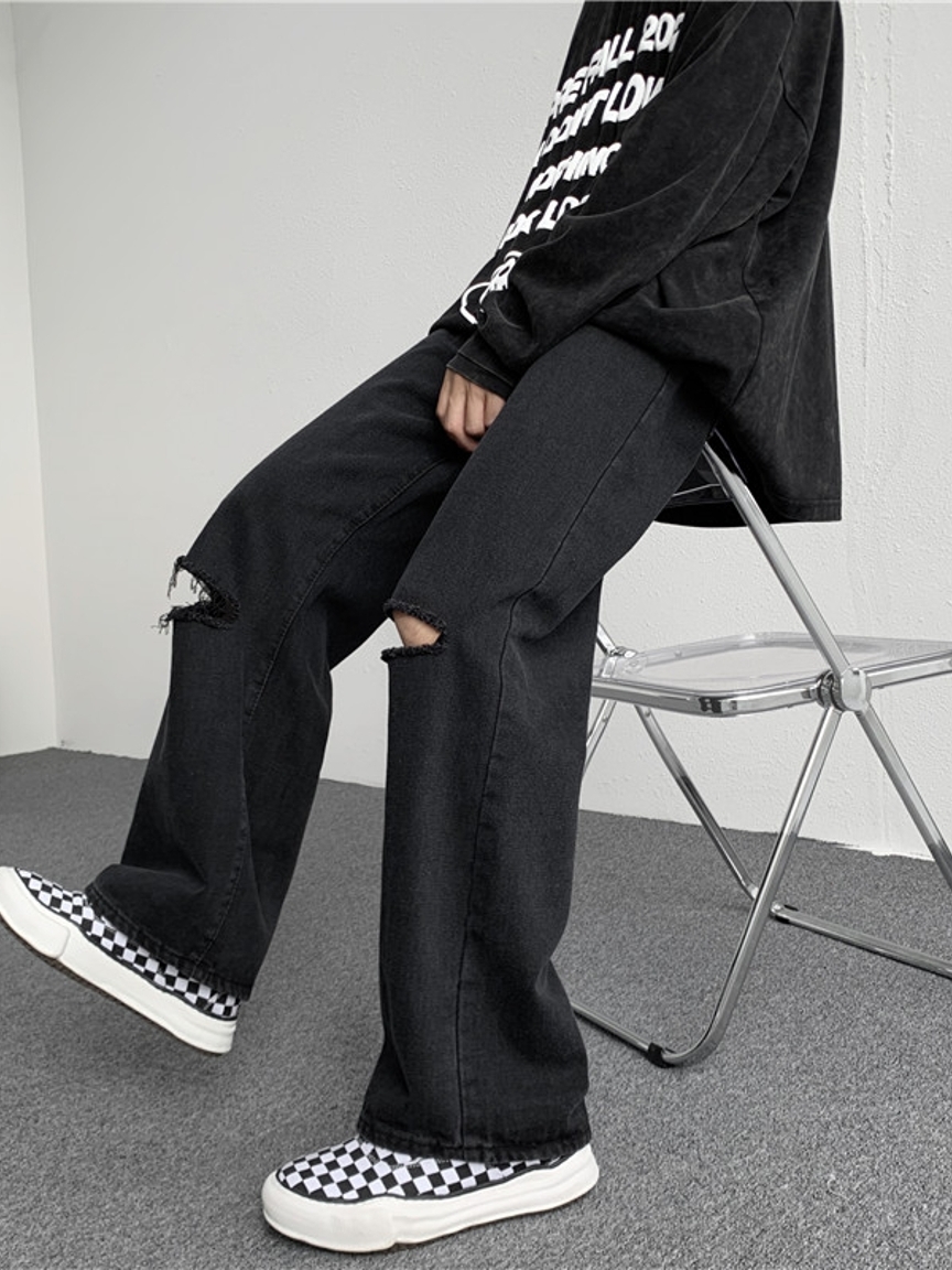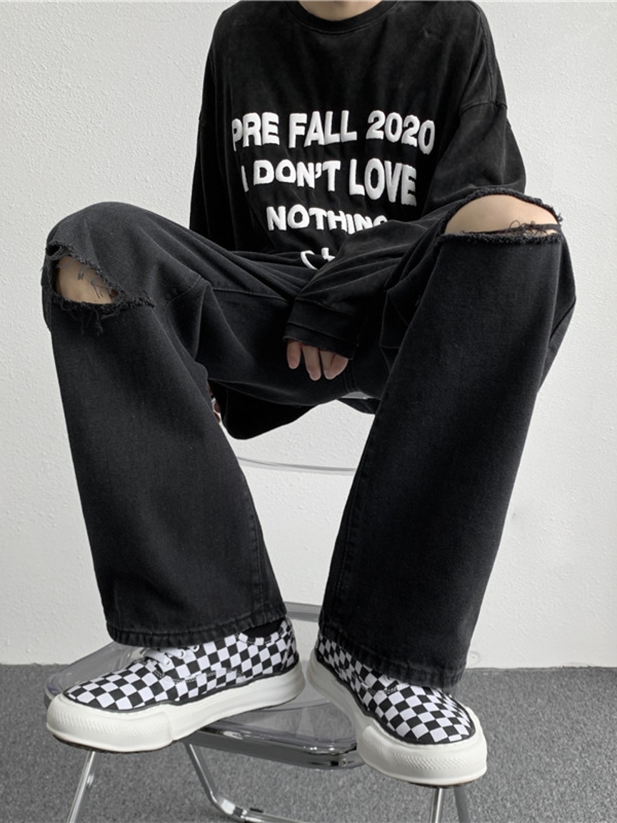潮流又个性的一款男士牛仔裤,运用破洞的元素设计,让这条牛仔裤变得更加时尚又型,同时增添了几分不羁的街头潮流感。