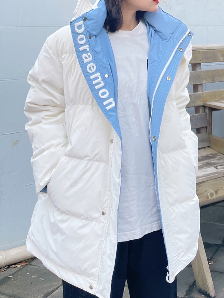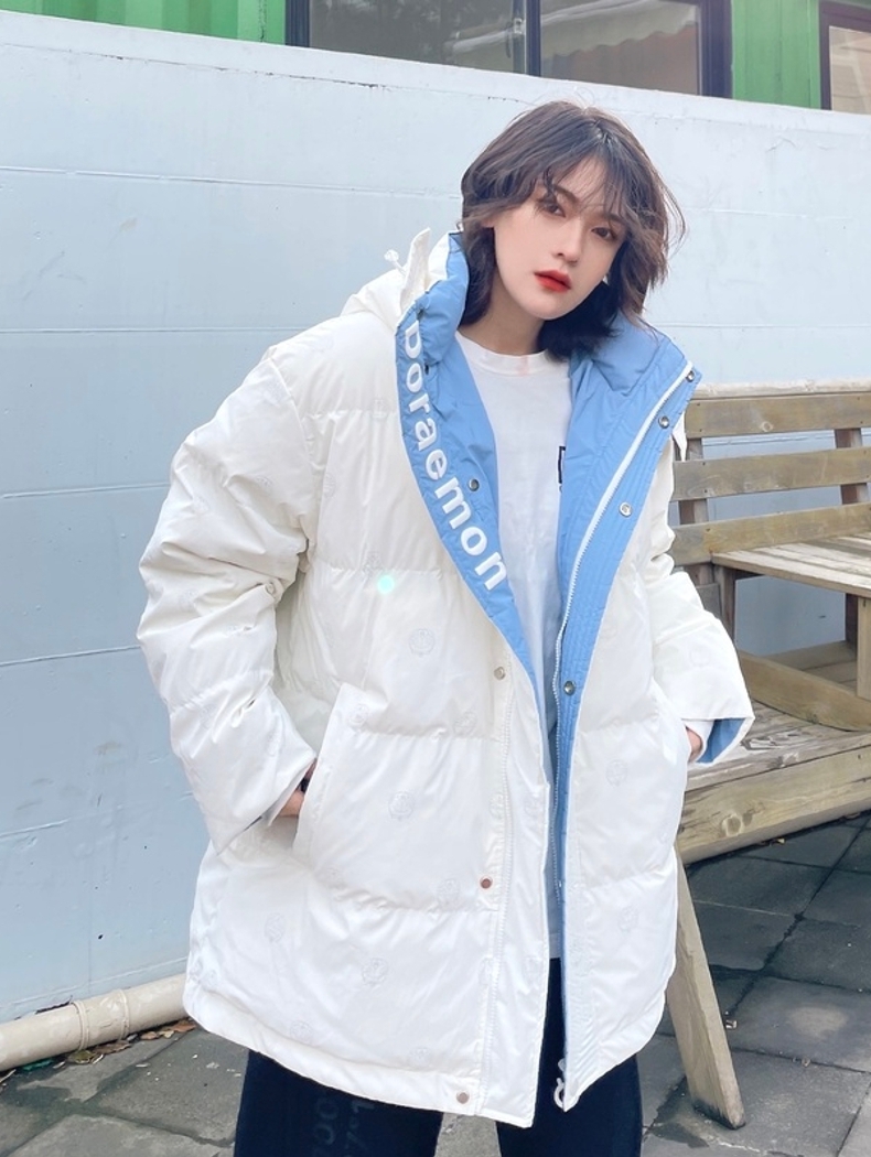 时尚的连帽羽绒服,上身很甜美。可拆卸的帽子,实现了多种搭配的可能。中长的款型,能够修饰腿型,很显高显瘦,超级温暖的感觉。