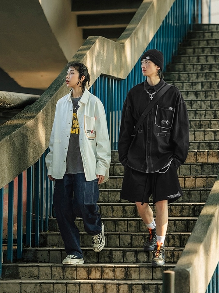 帅气的中性风的情侣衬衫,工装款式,延续经典的硬挺设计,展现率性硬朗的视觉效果;摆脱沉闷的撞色设计,格外的吸引眼球;宽松的版型,上身休闲有范。