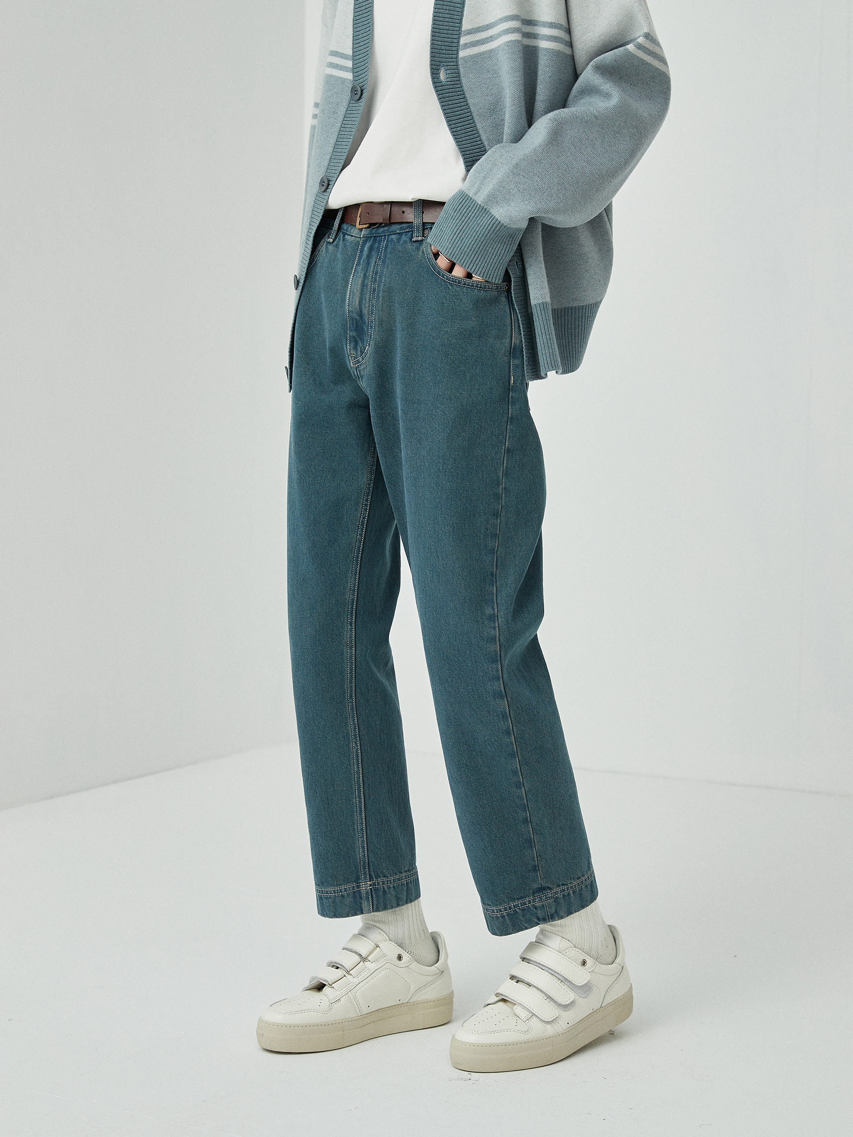 宽松版型,穿着舒适自在,经典复古风格,时尚百搭,直筒裤型,修饰腿部线条。