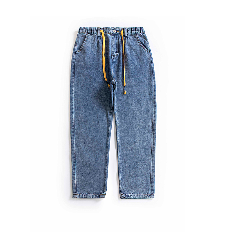 高腰设计,拉长身材比例。高腰牛仔裤,显瘦显腿长。直筒裤型,修饰腿部线条。