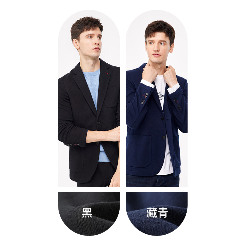 本款男士小西装外套采用经典的西装翻领设计,修饰颈部线条,展现出干练帅气的男士气质。