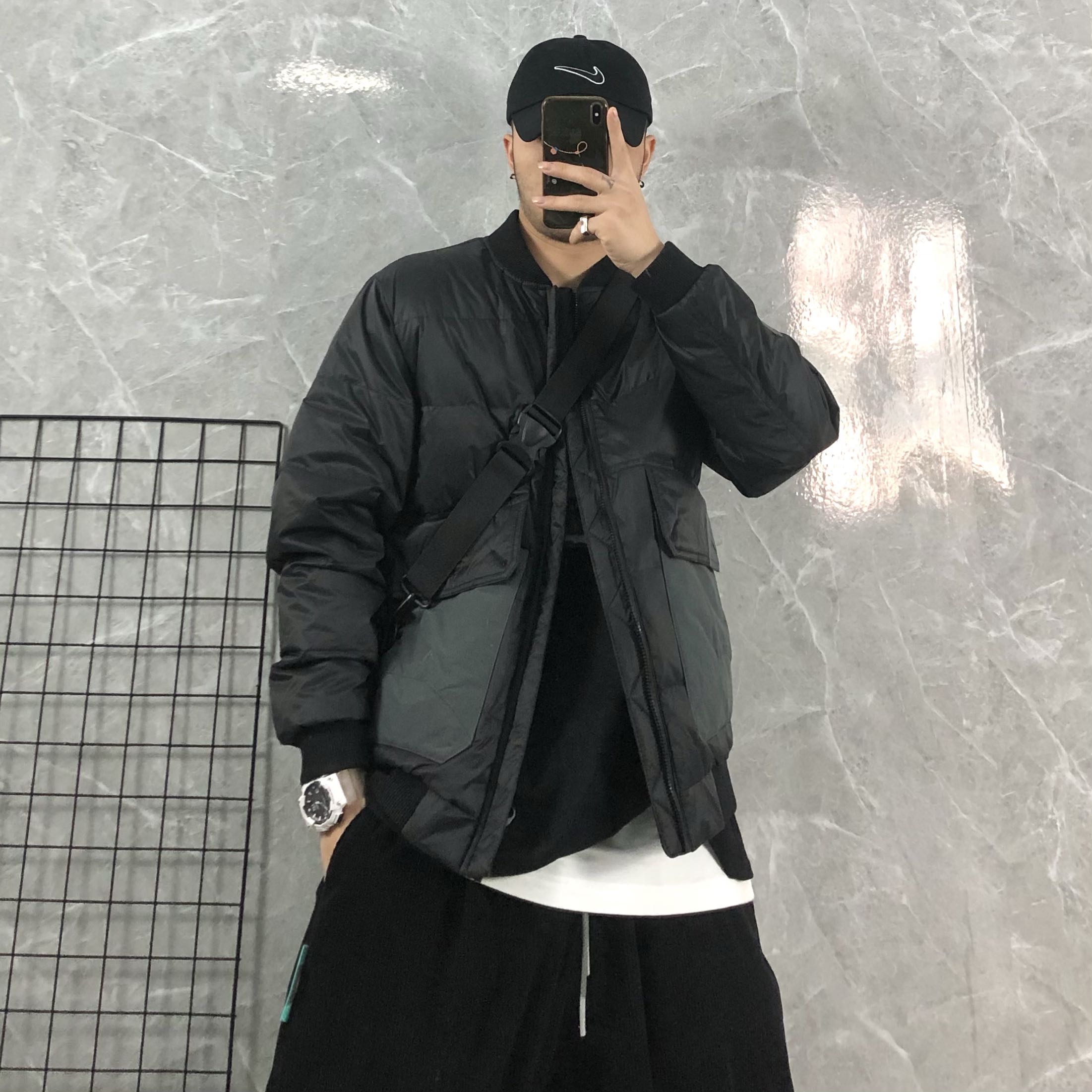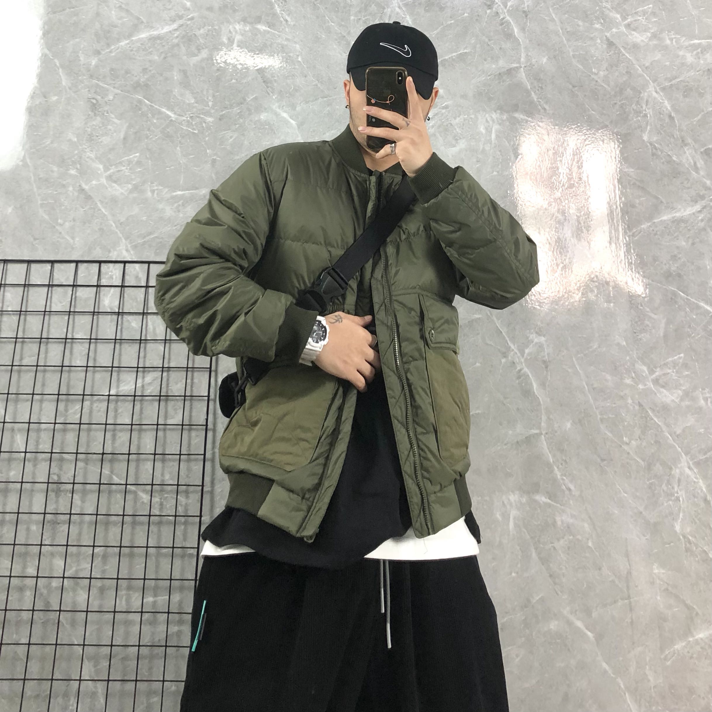 棒球领的设计,很好的修饰了脸型,连帽的款式,防风保暖,宽松的版型,不挑身材,上身很有范。