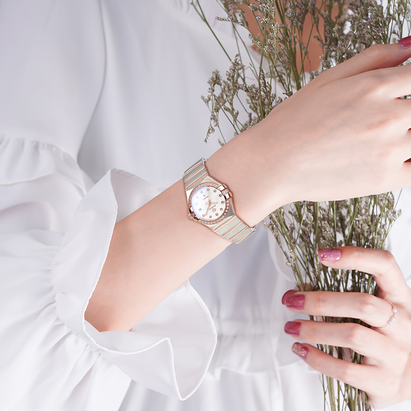 精致的镂空表盘设计,搭配上精致的水钻点缀,彰显优雅气质。