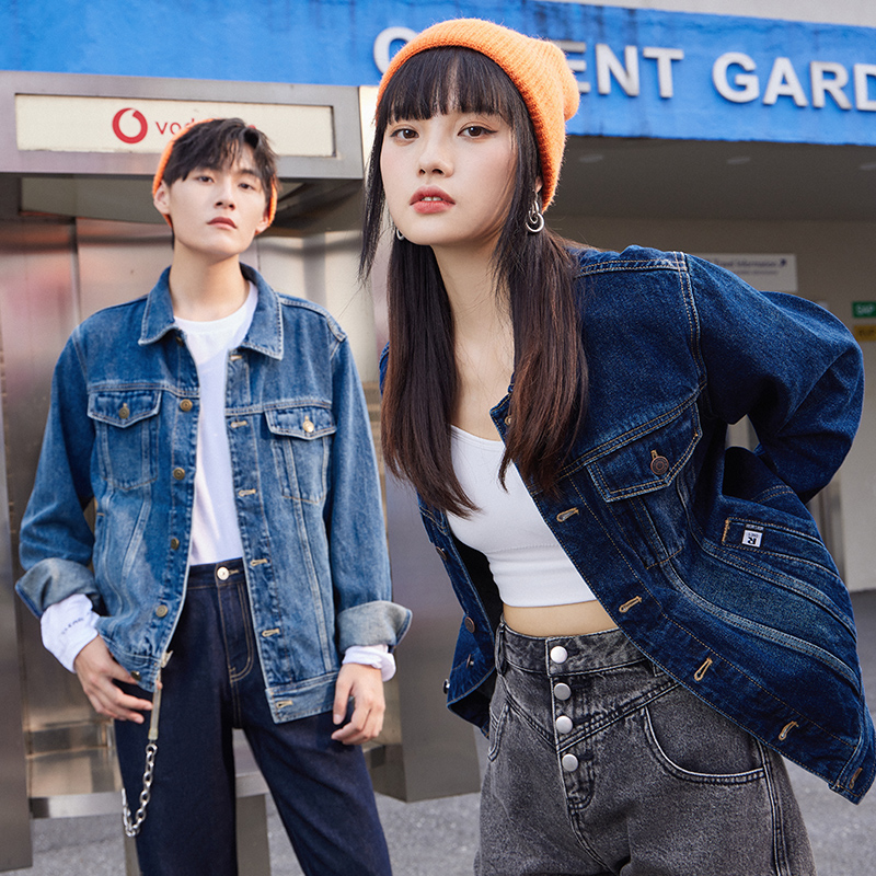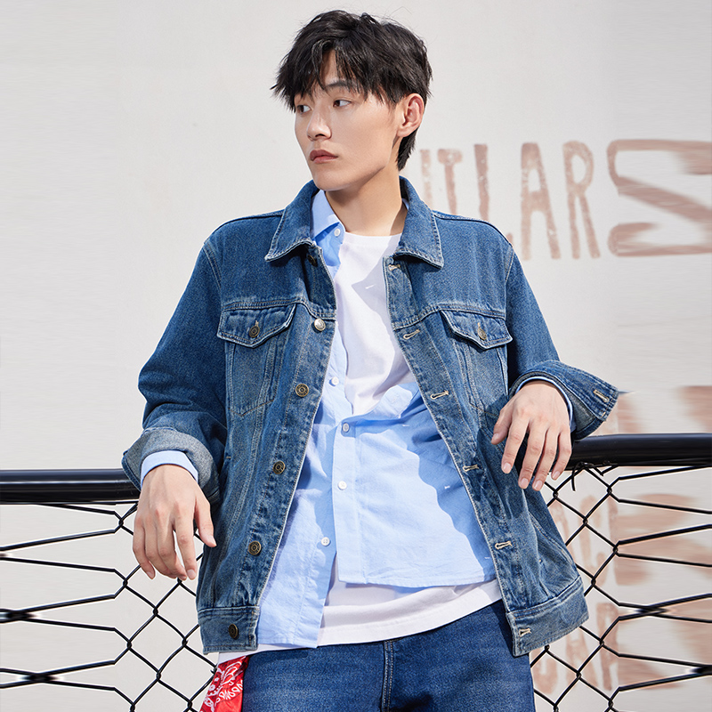 牛仔外套,采用了经典的翻领设计,简约大方,穿着舒适,胸前的字母印花,增添了几分时尚感,宽松的版型,上身舒适自在,休闲百搭。