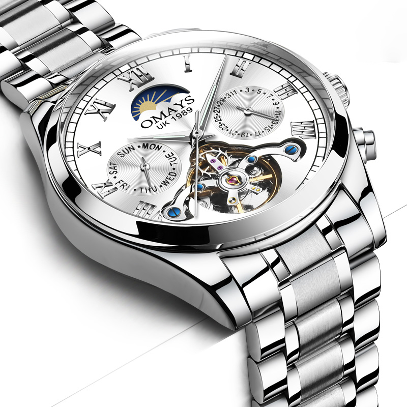 全自动机械机芯,走时精准。时尚的镂空表盘,个性十足。