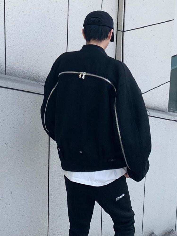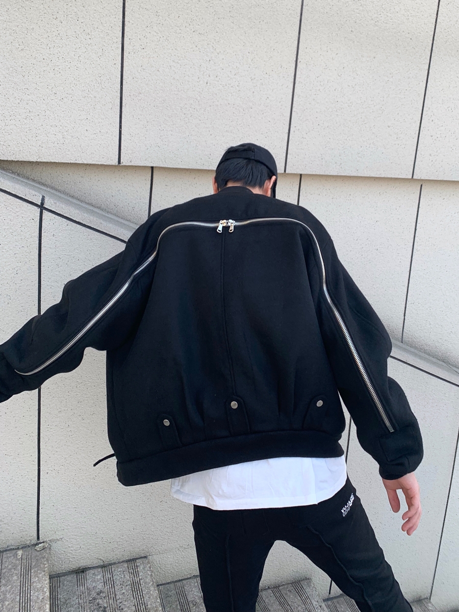 下摆与袖口拼接罗纹,便于防风提升气场纯版面干净整洁造型帅气棒球领简洁挺阔酷感的造型非常抢眼,上身休闲立体手臂与门襟边均添加了金属拉链装饰,面料舒适表面具有光泽。