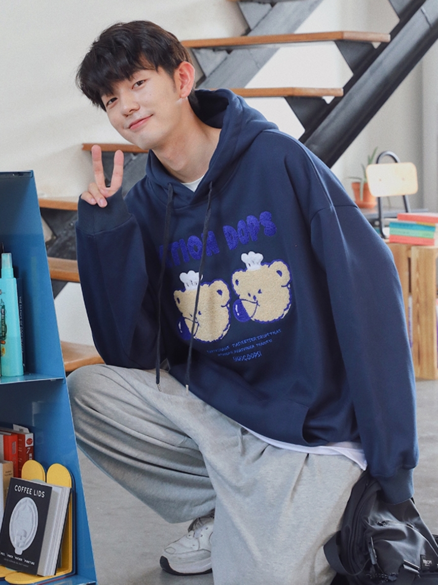 胸前撞色的小熊和英文字母的点缀,增加满满的趣味感,更加俏皮与可爱气息,宽松版型的裁剪不挑身形。