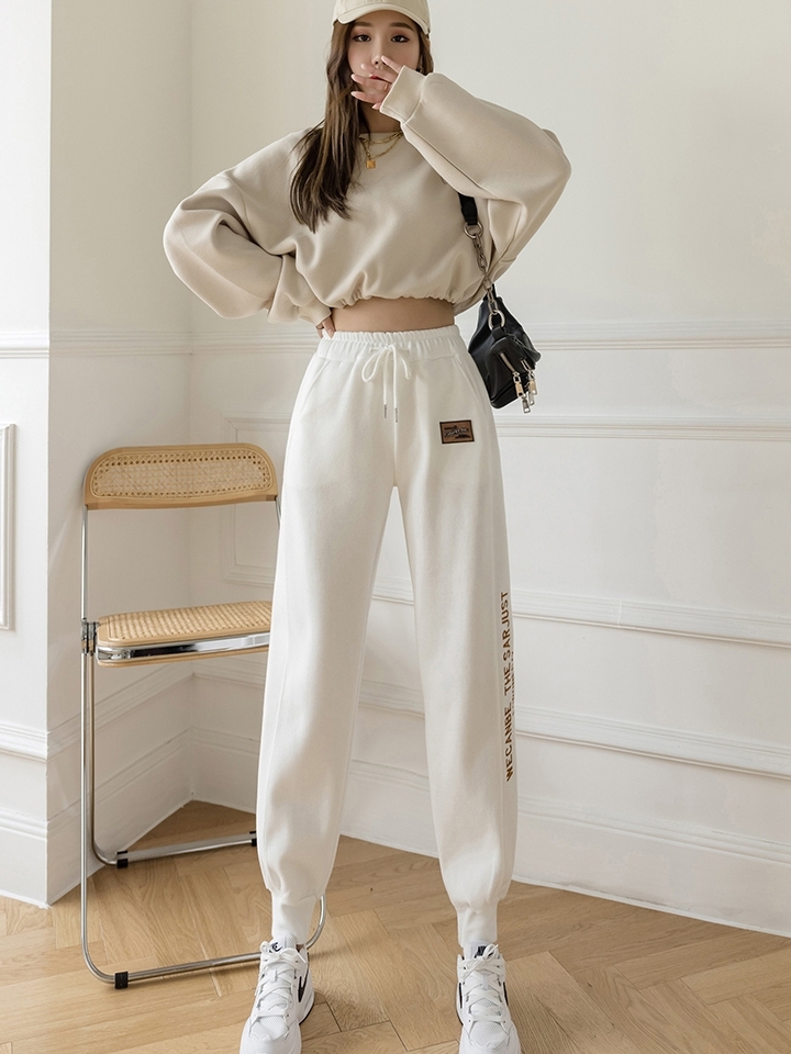 字母点缀,时尚前卫,为这条休闲裤增添了几分时髦感,穿上它就能个性十足了,而且束脚的设计,还能起到防风的效果。