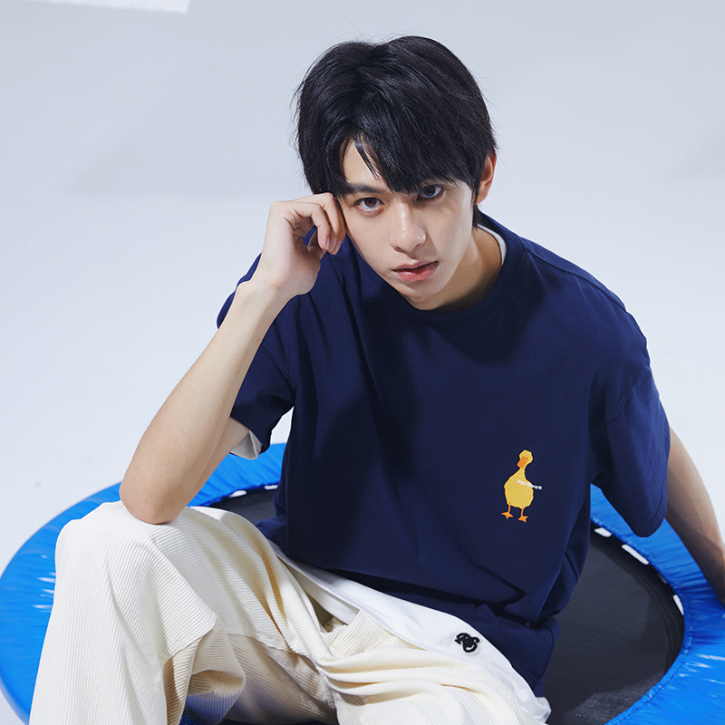 简约的圆领设计,修饰颈部线条,胸前的字母印花,彰显个性,宽松的版型,穿着舒适自在,纯棉的面料,亲肤透气,上身舒适透气。