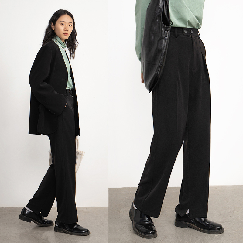 这款西装裤是非常的百搭,而且还很显瘦,九分的长度,露出脚踝,显高又显腿长,搭配一件白色的衬衫,就能轻松穿出时尚感。